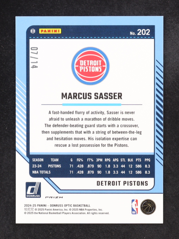 Marcus Sasser 2024-25 Donruss Optic Green FOTL #202 #7/14