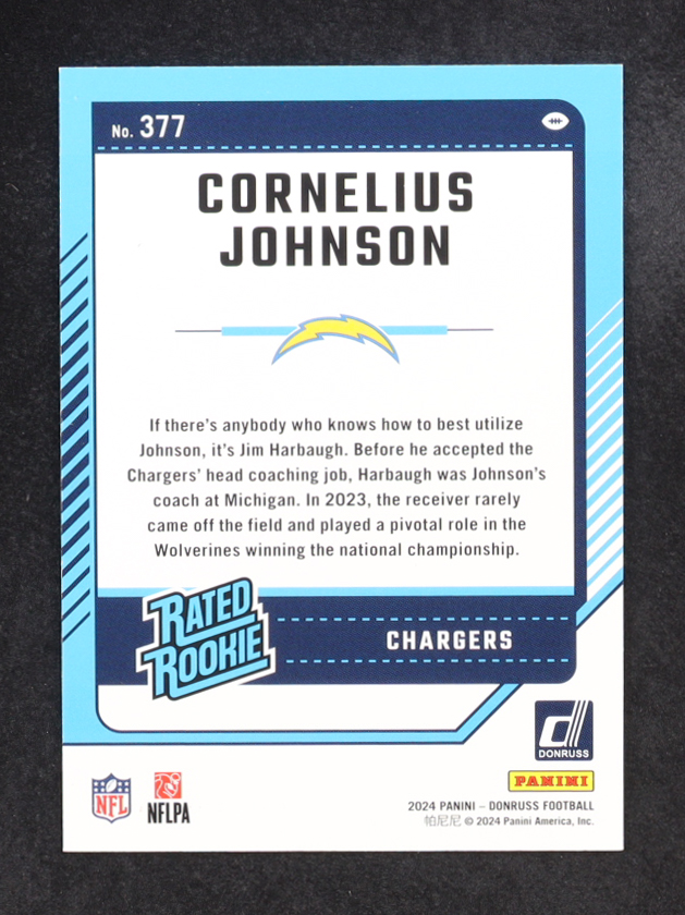 Cornelius Johnson 2024 Donruss Jersey Number #377 RR RC #17/86