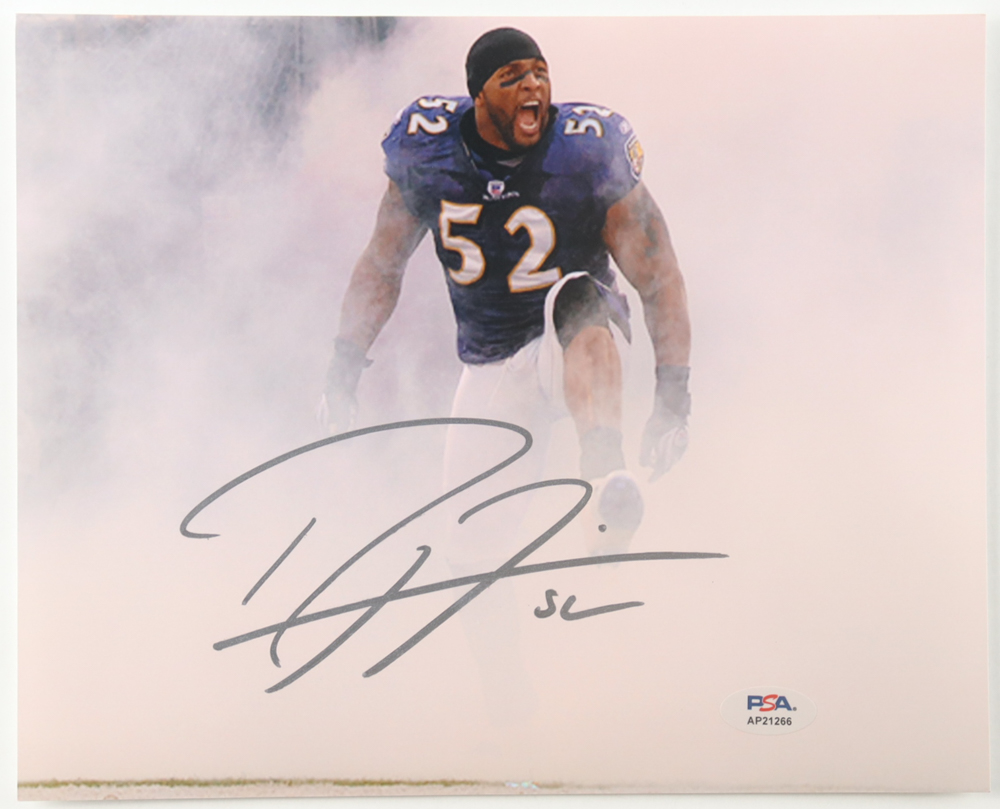 Photo measures approximately 8" x 10" in size and has been hand-signed by Ray Lewis (Baltimore Ravens, HOF).