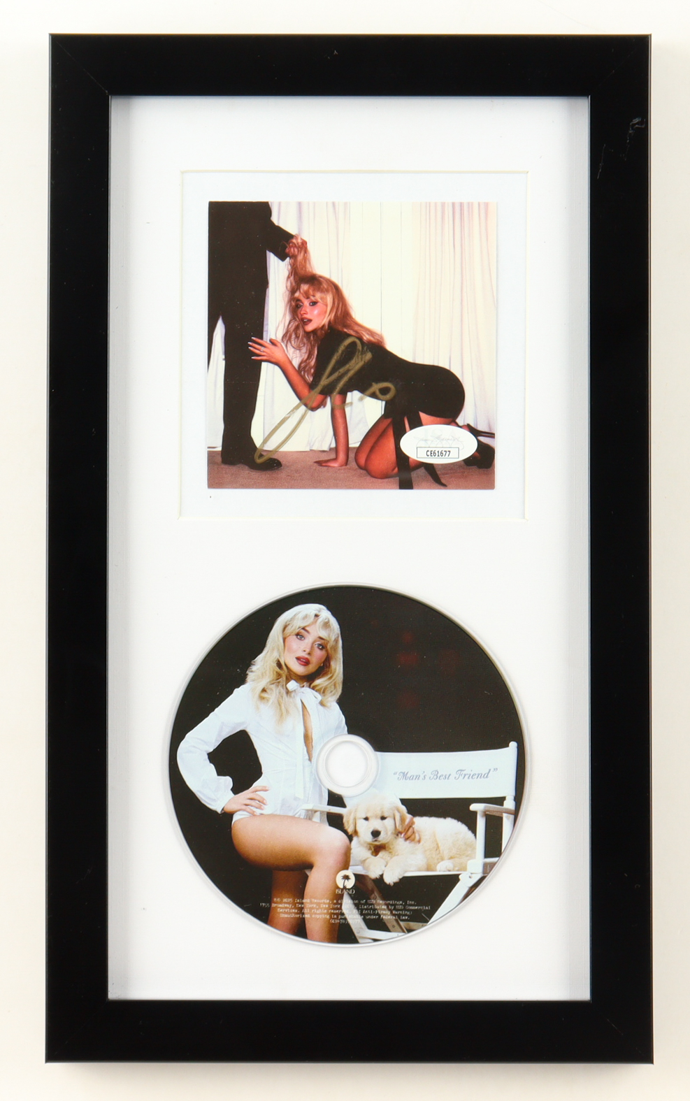 Custom frame measures approximately 8" x 13.5" in size. Features "Man's Best Friend" CD insert that has been hand-signed by Sabrina Carpenter. Please note, the CD is included as shown.