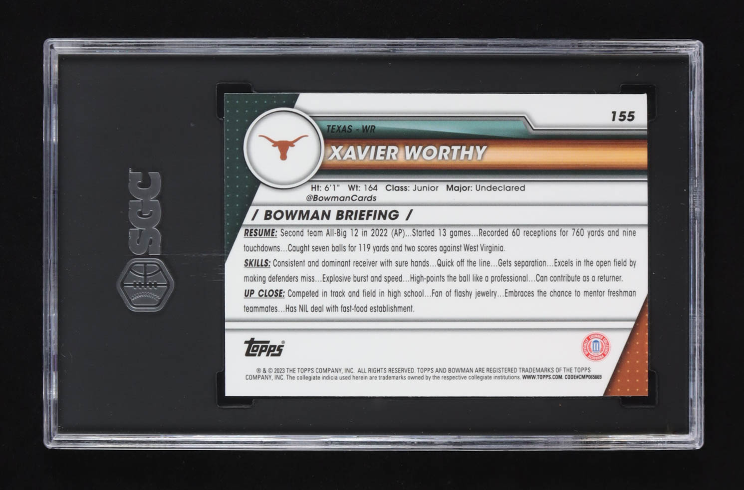 Xavier Worthy 2023 Bowman Chrome University #155 RC (SGC 10)