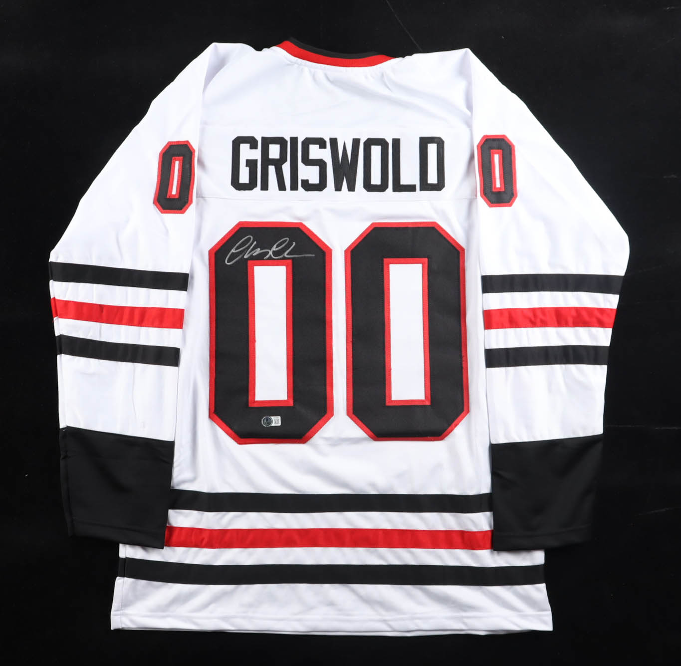 Custom jersey with everything sewn on, size XL. Hand-signed by Chevy Chase (Clark Griswold).