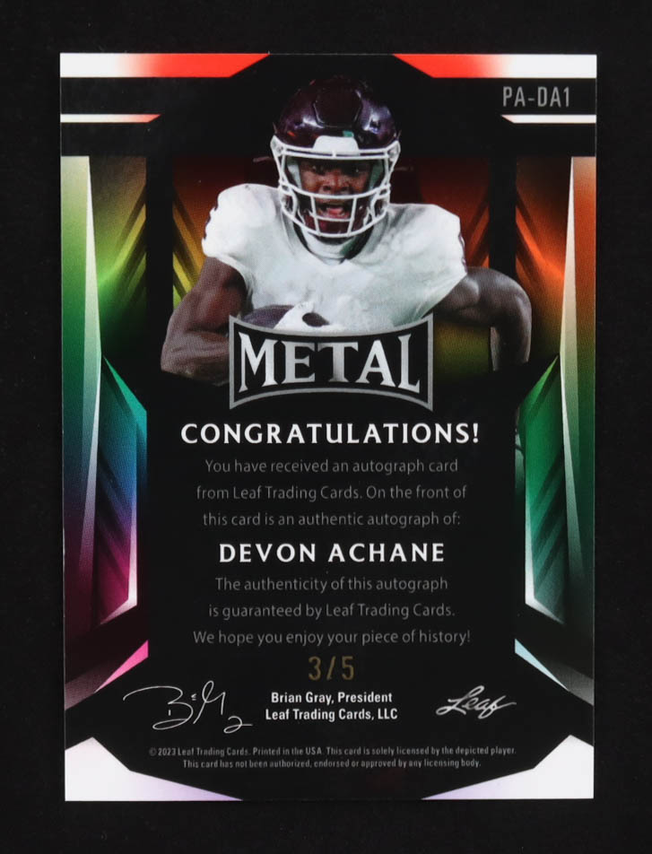 Devon Achane 2023 Leaf Metal Portrait Autographs Prismatic Purple #PADA1 RC #3/5