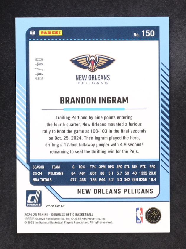 Brandon Ingram 2024-25 Donruss Optic Blue #150 #4/49