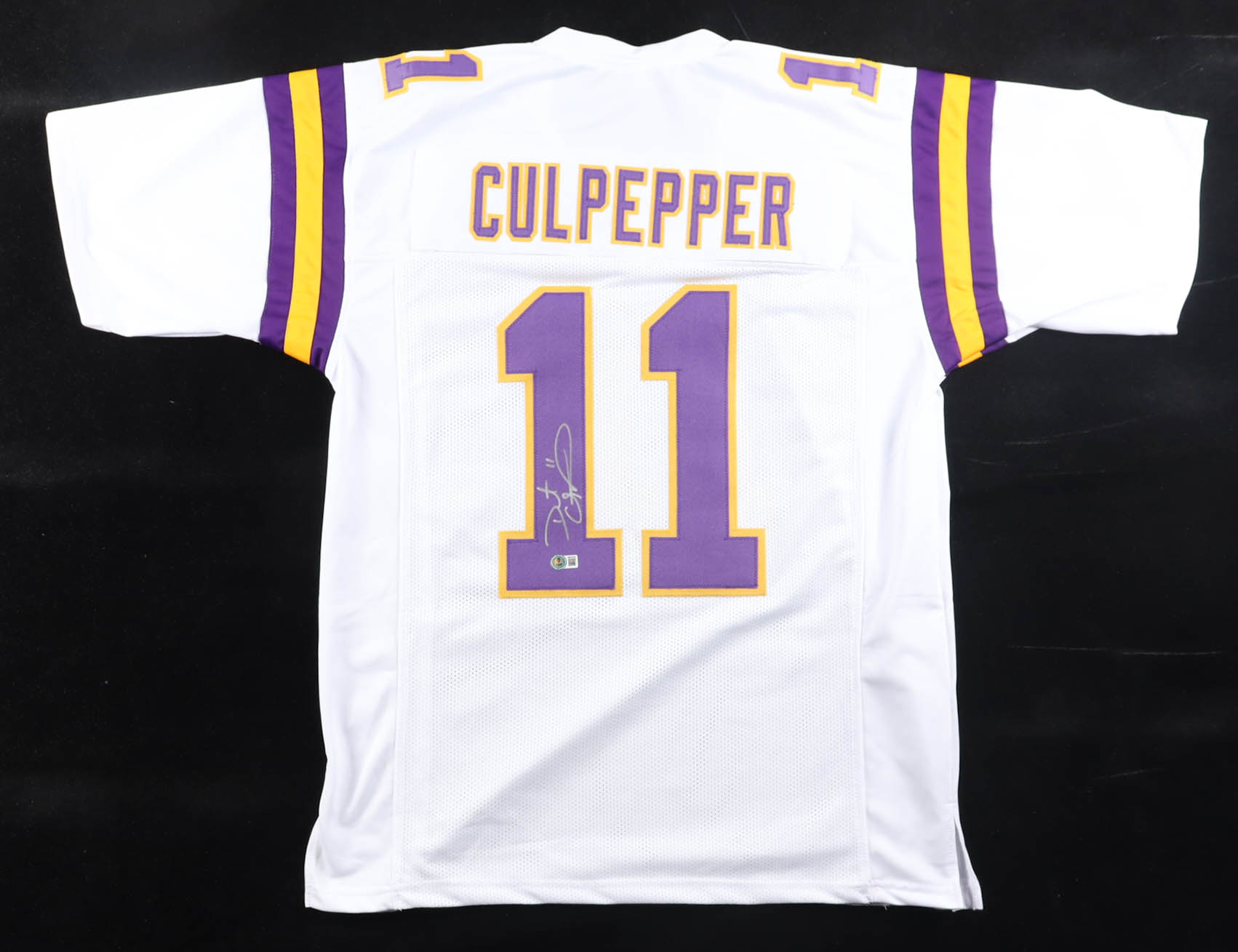 Custom jersey with everything sewn on, size XL. Hand-signed by Daunte Culpepper.