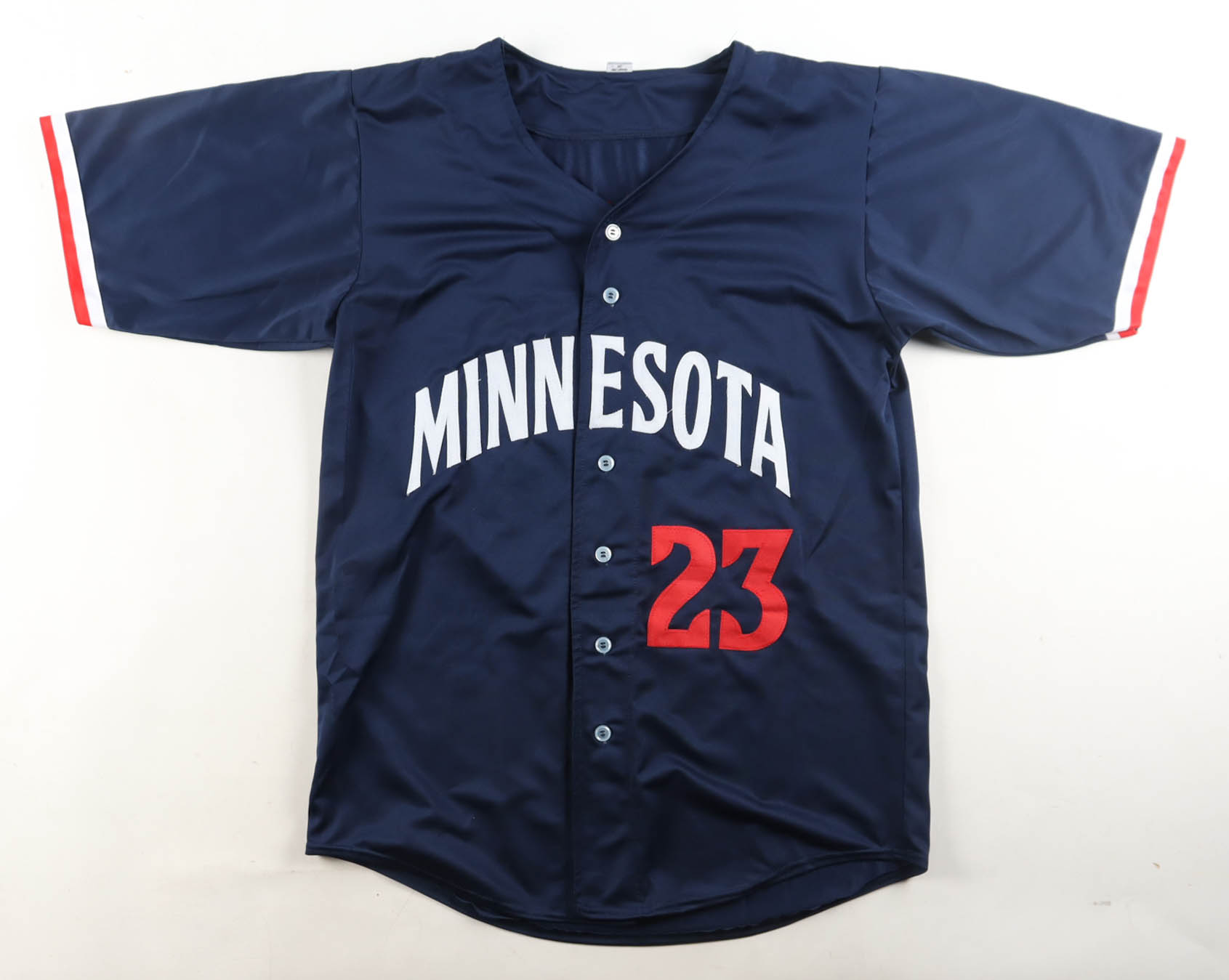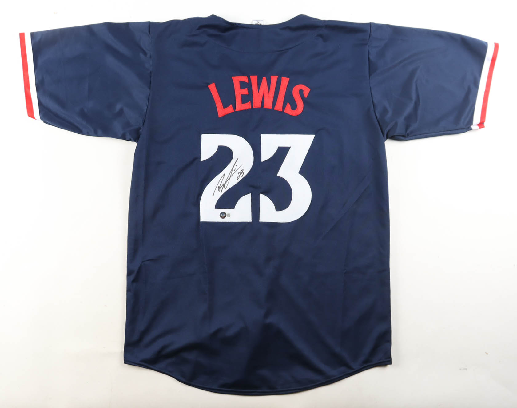 Custom jersey with everything pressed on, size XL. Hand-signed by Royce Lewis. Please note, glue is visible through the reverse number.
