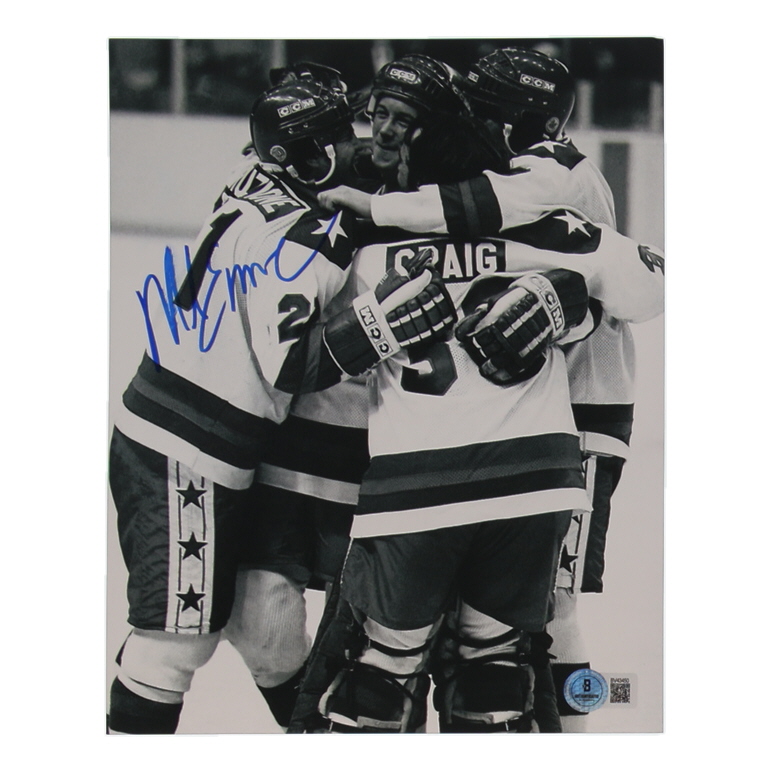 Photo measures approximately 8" x 10" in size. Hand-signed by Mike Eruzione.