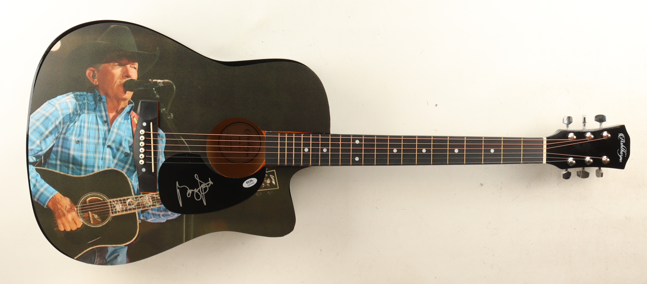 Ashthorpe Custom Acoustic Guitar measures approximately 42" in length and has been hand-signed on the pickguard by George Strait (HOF).