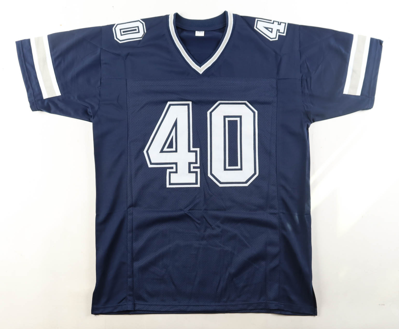 Custom jersey with everything sewn on, size XL. Hand-signed by Bill Bates.