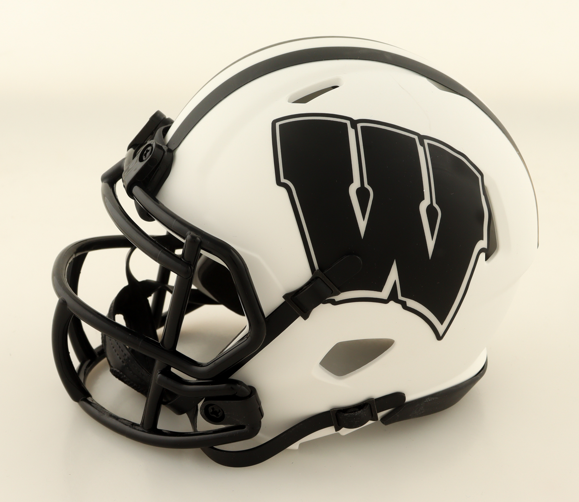 Riddell Wisconsin Badgers Lunar Eclipse Alternate Speed mini helmet has been hand-signed by Jonathan Taylor.