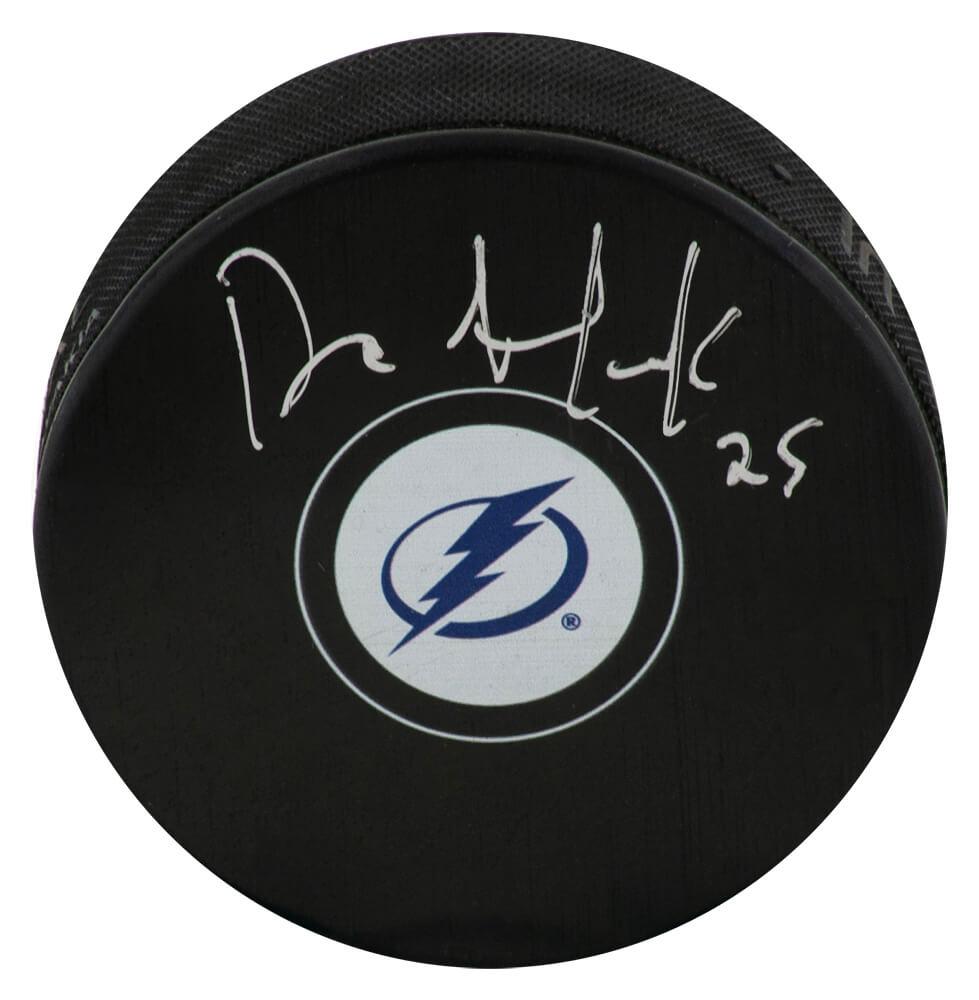 Dave Andreychuk Signed Lightning Logo Hockey Puck (Schwartz)