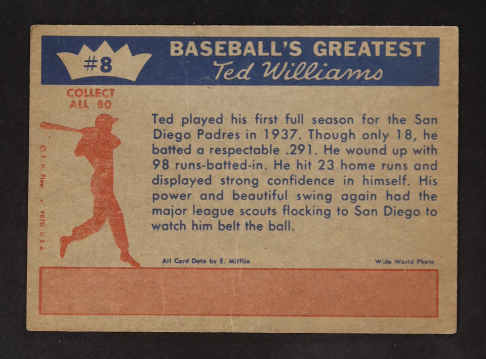 Ted Williams 1959 Fleer #8 1937 First Full Season