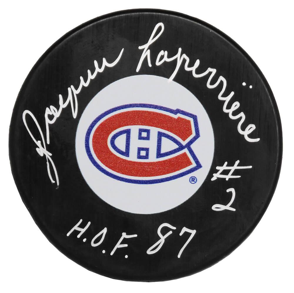 Jacques Laperriere Signed Canadiens Logo Hockey Puck Inscribed "H.O.F. 87" (Schwartz)