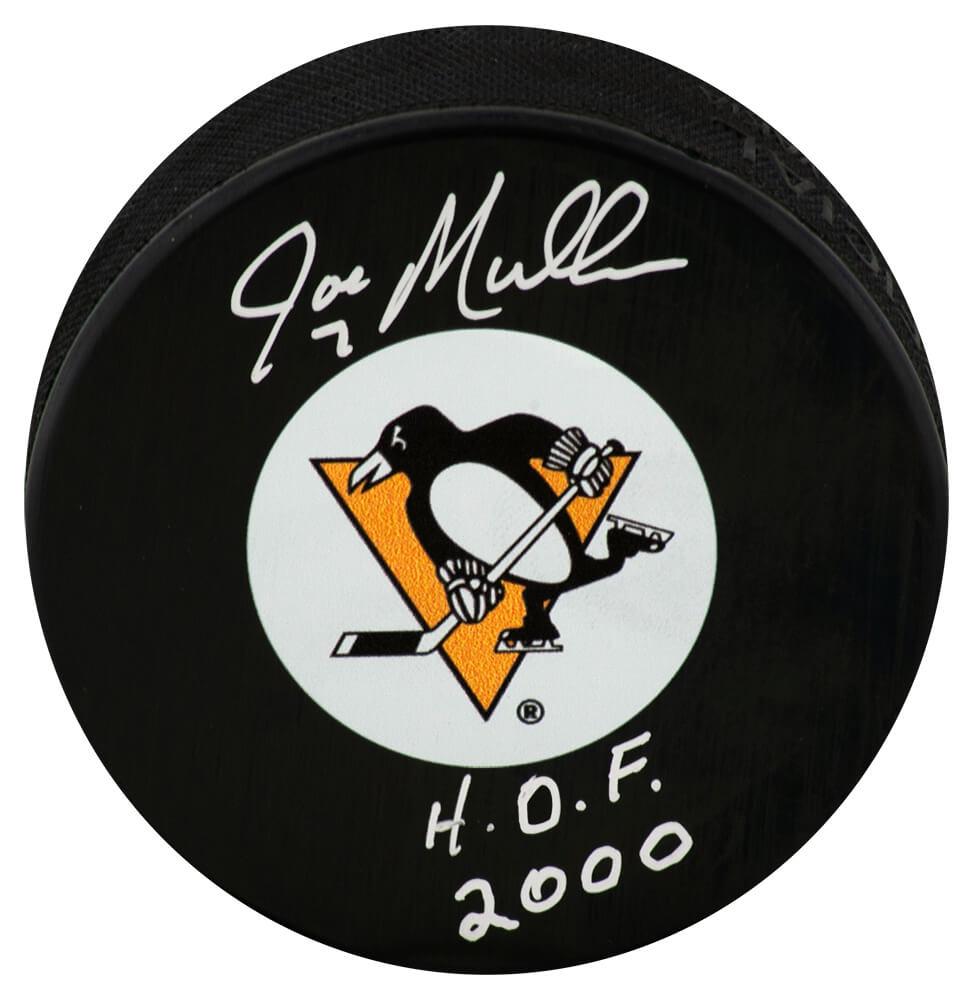 Joe Mullen Signed Penguins Logo Hockey Puck Inscribed "H.O.F. 2000" (Schwartz)
