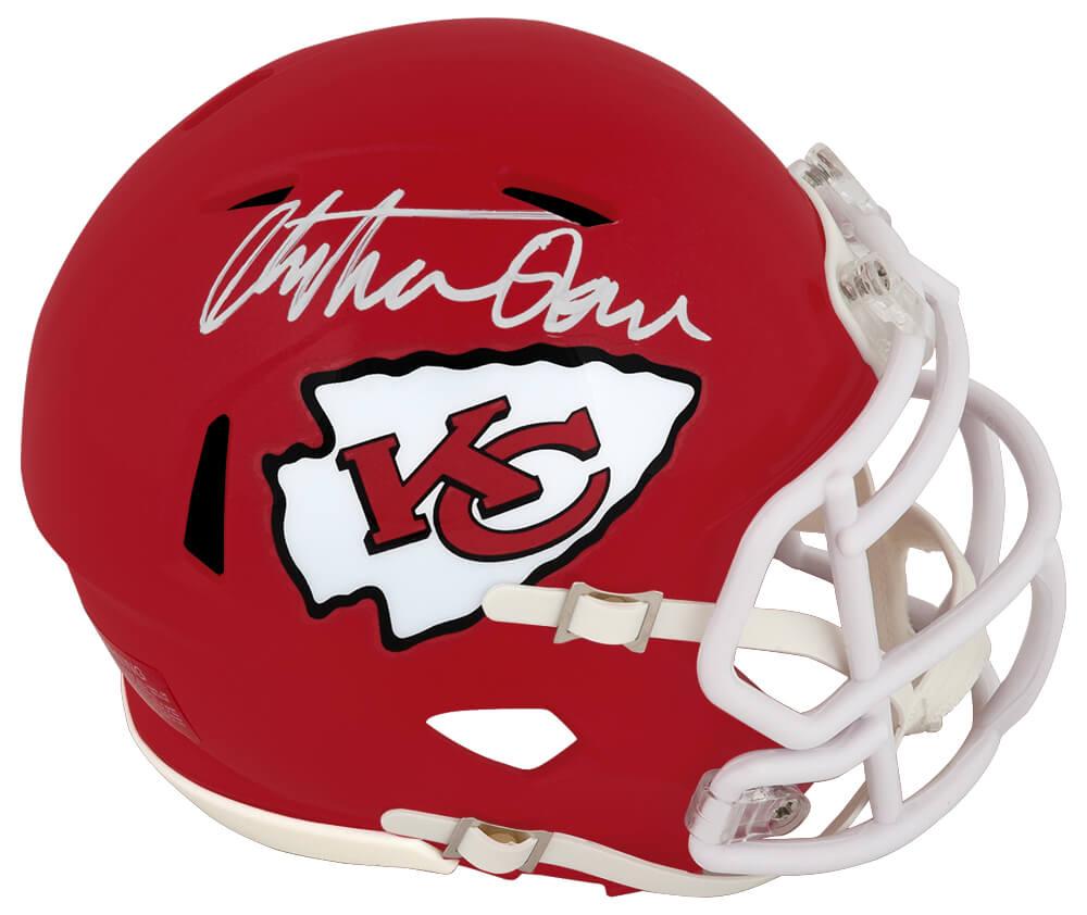 Riddell Kansas City Chiefs speed mini helmet. Hand-signed by Christian Okoye.