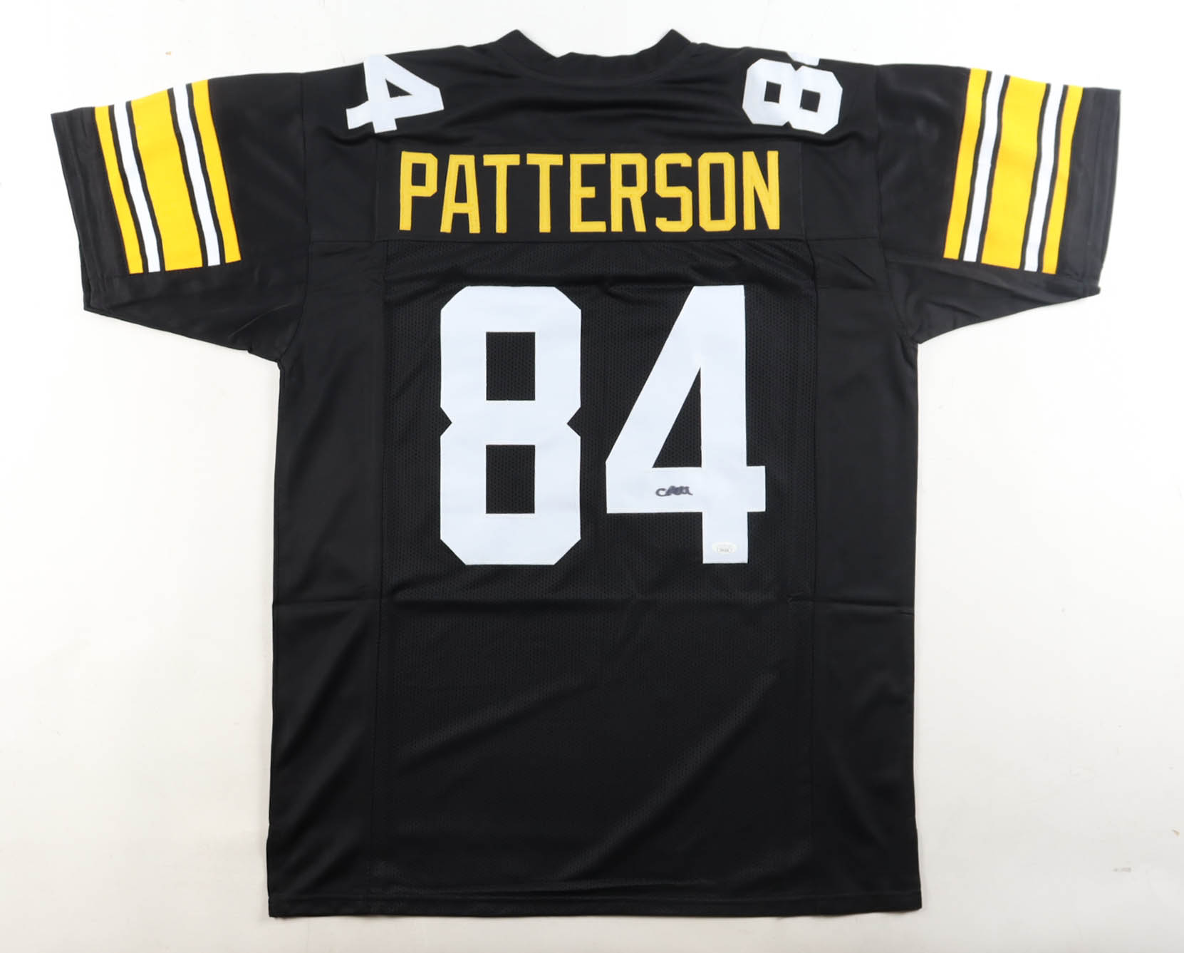 Custom jersey with everything is sewn on. Hand-signed by Cordarrelle Patterson. Please note, the signature has bled.