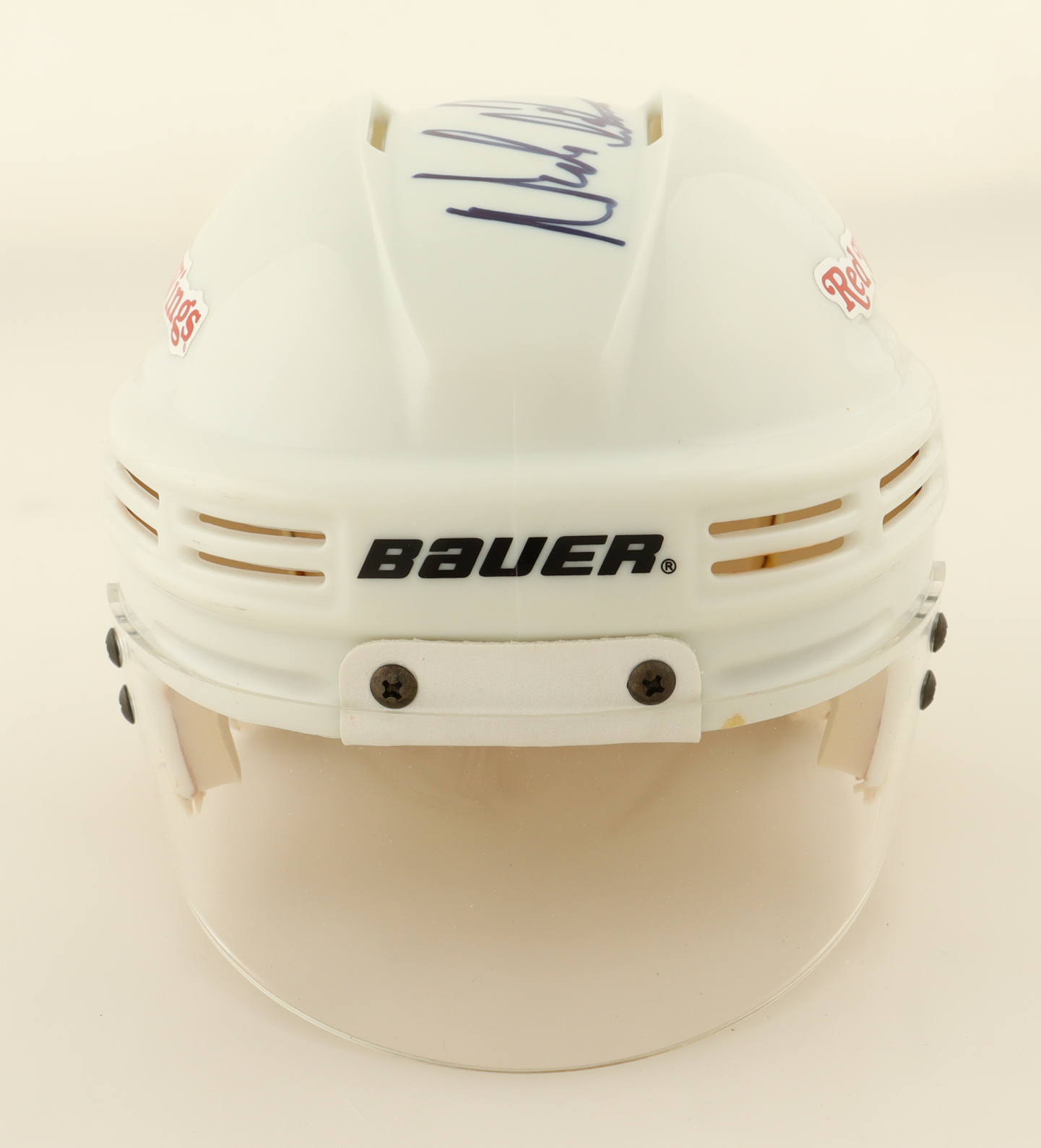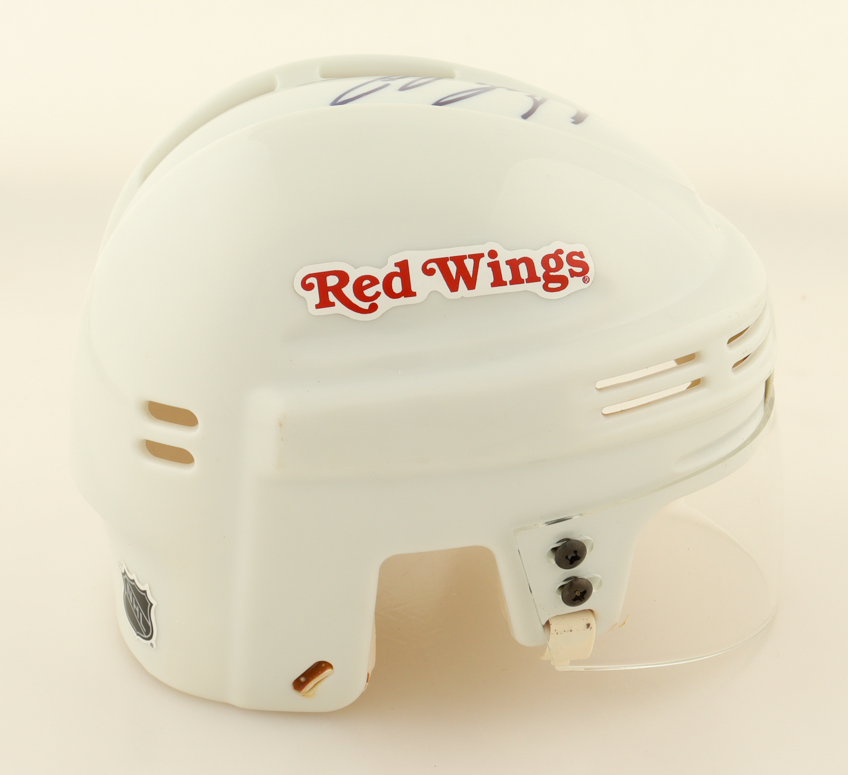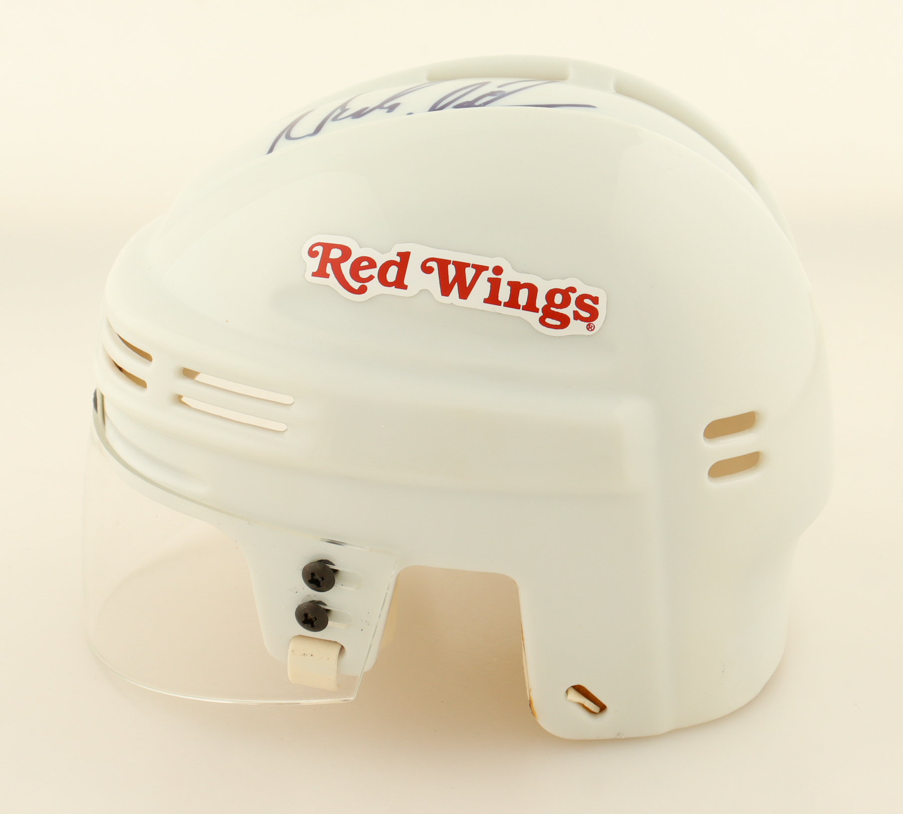 Detroit Red Wings mini helmet has been hand-signed by Nicklas Lidstrom (HOF).