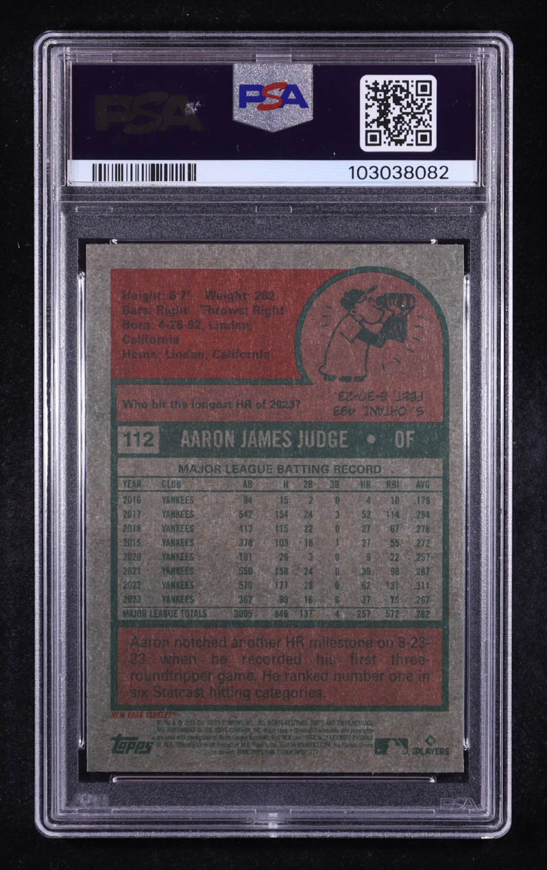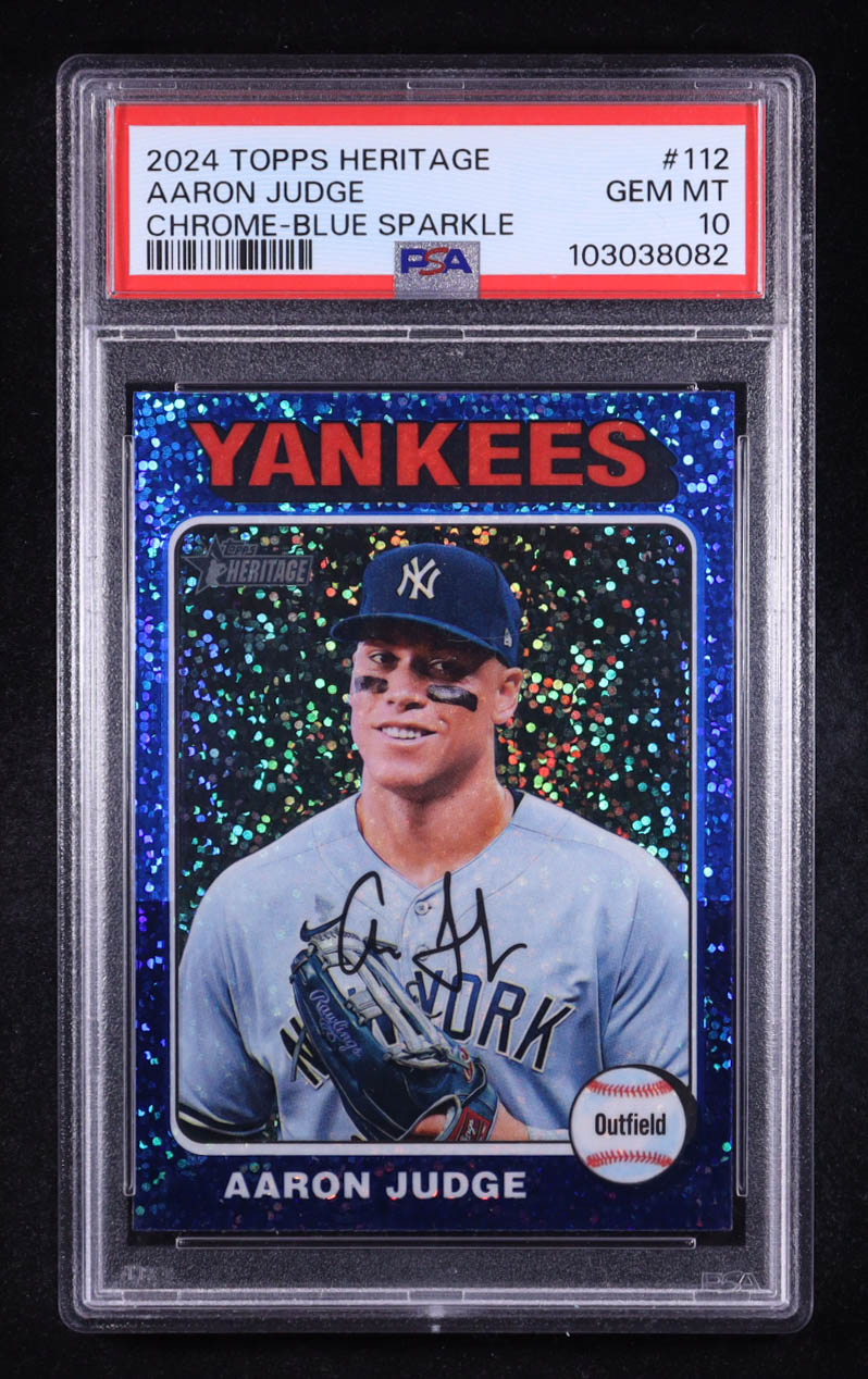 Aaron Judge 2024 Topps Heritage Chrome Blue Sparkle Refractors #112 (PSA 10)