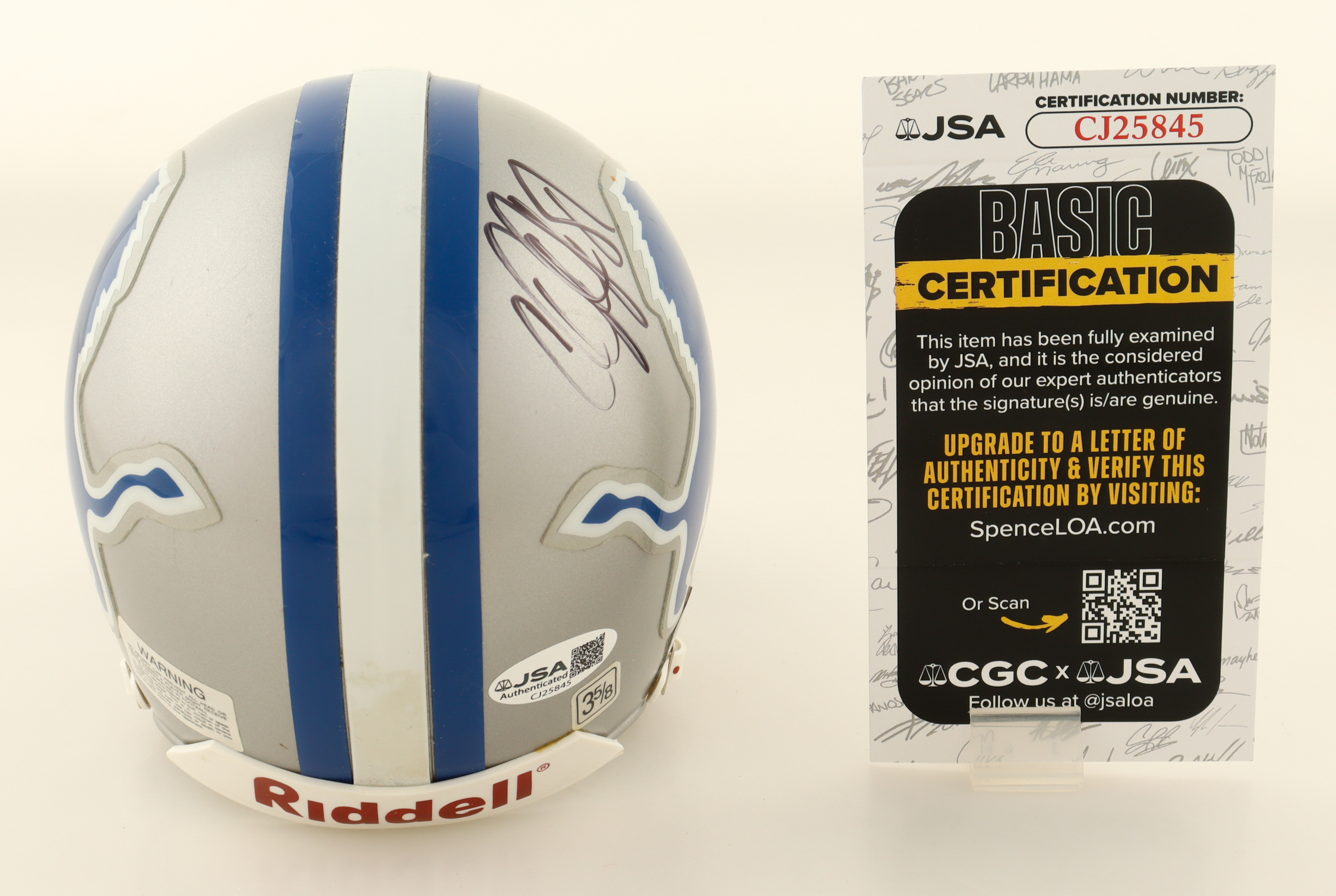 Riddell Detroit Lions mini helmet. Hand-signed by Calvin Johnson (HOF).
