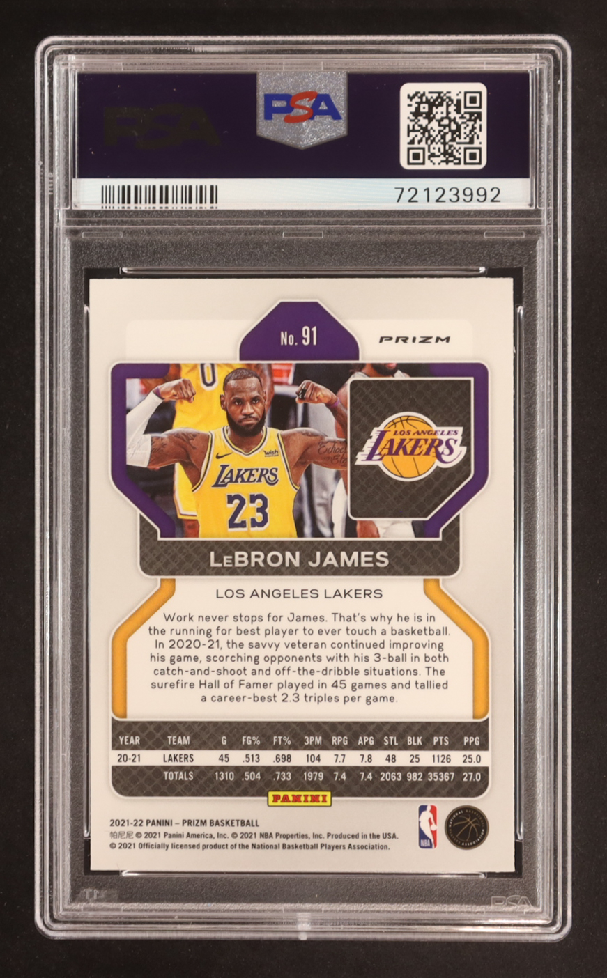 LeBron James 2021-22 Panini Prizm Prizms Red Ice #91 (PSA 9)
