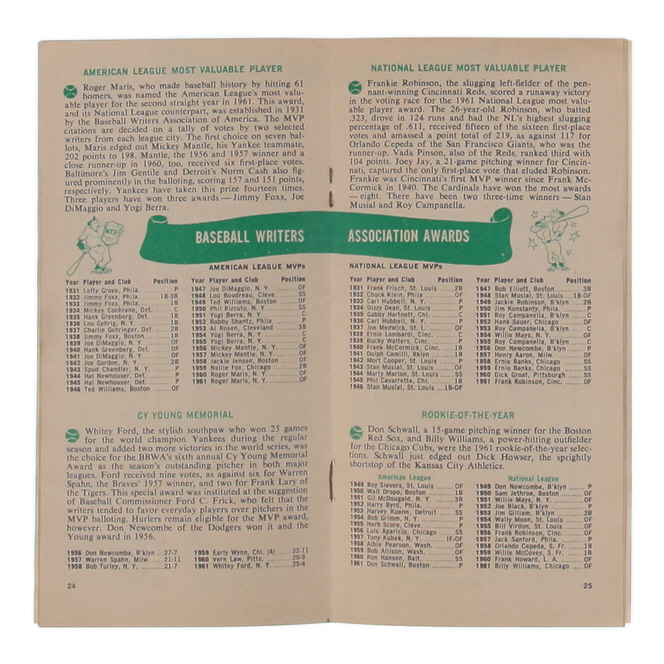 1962 Vintage Baseball Facts & Full Schedule Booklet