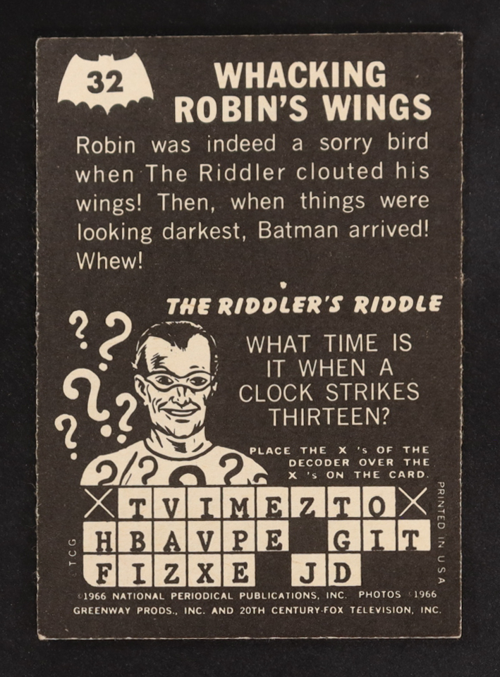 1966 Topps Batman Riddler Backs #32 Whacking Robin's Wings