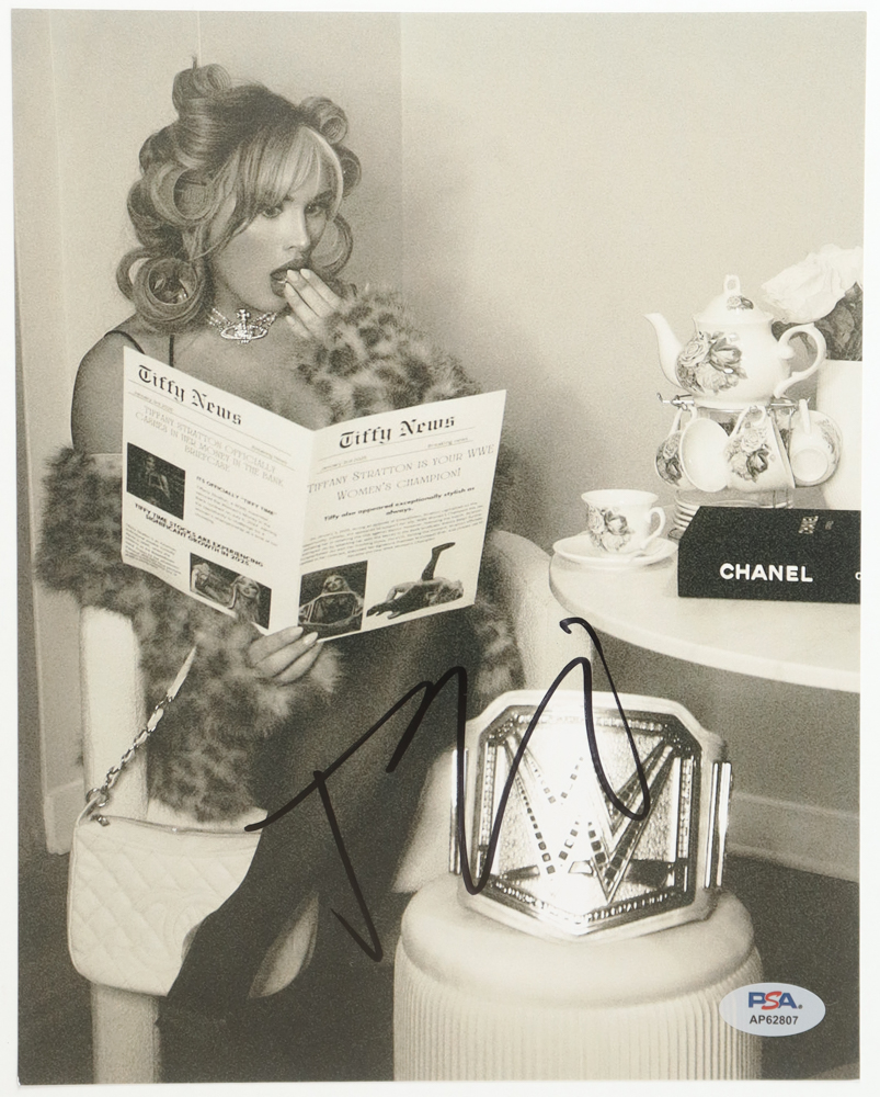 Photo measures 8” x 10” in size and has been hand-signed by Tiffany Stratton.