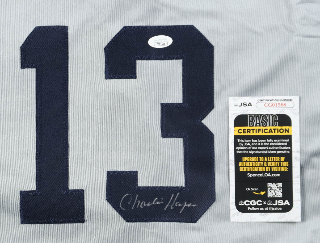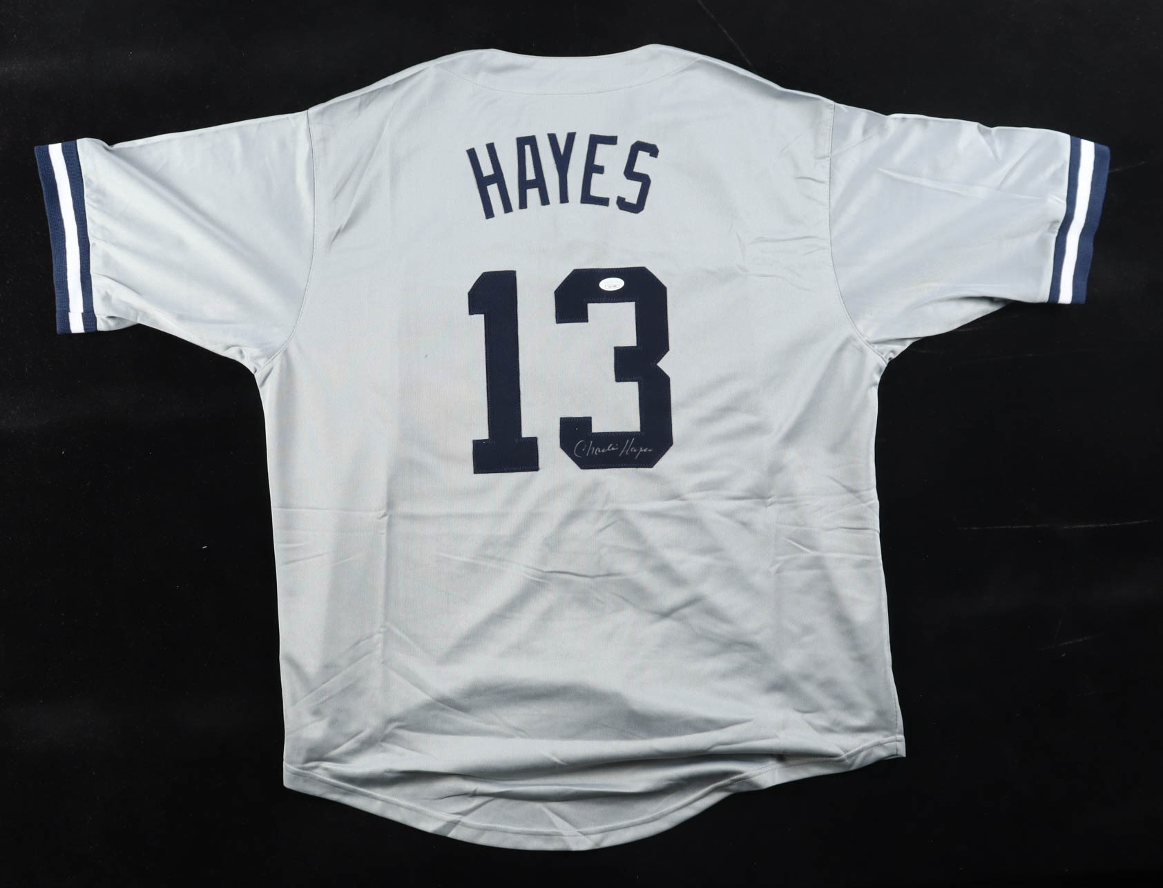 Custom jersey with everything sewn on, size XL. Hand-signed by Charlie Hayes.