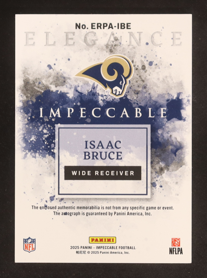 Isaac Bruce 2025 Panini Impeccable Elegance Retired Patch Autographs Silver #12 #10/35