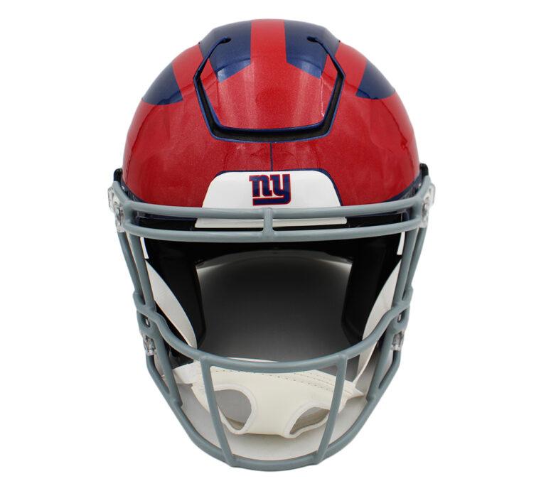 Riddell New York Giants full-size authentic on-field alternate speedflex helmet has been hand-signed by Michael Strahan (HOF).