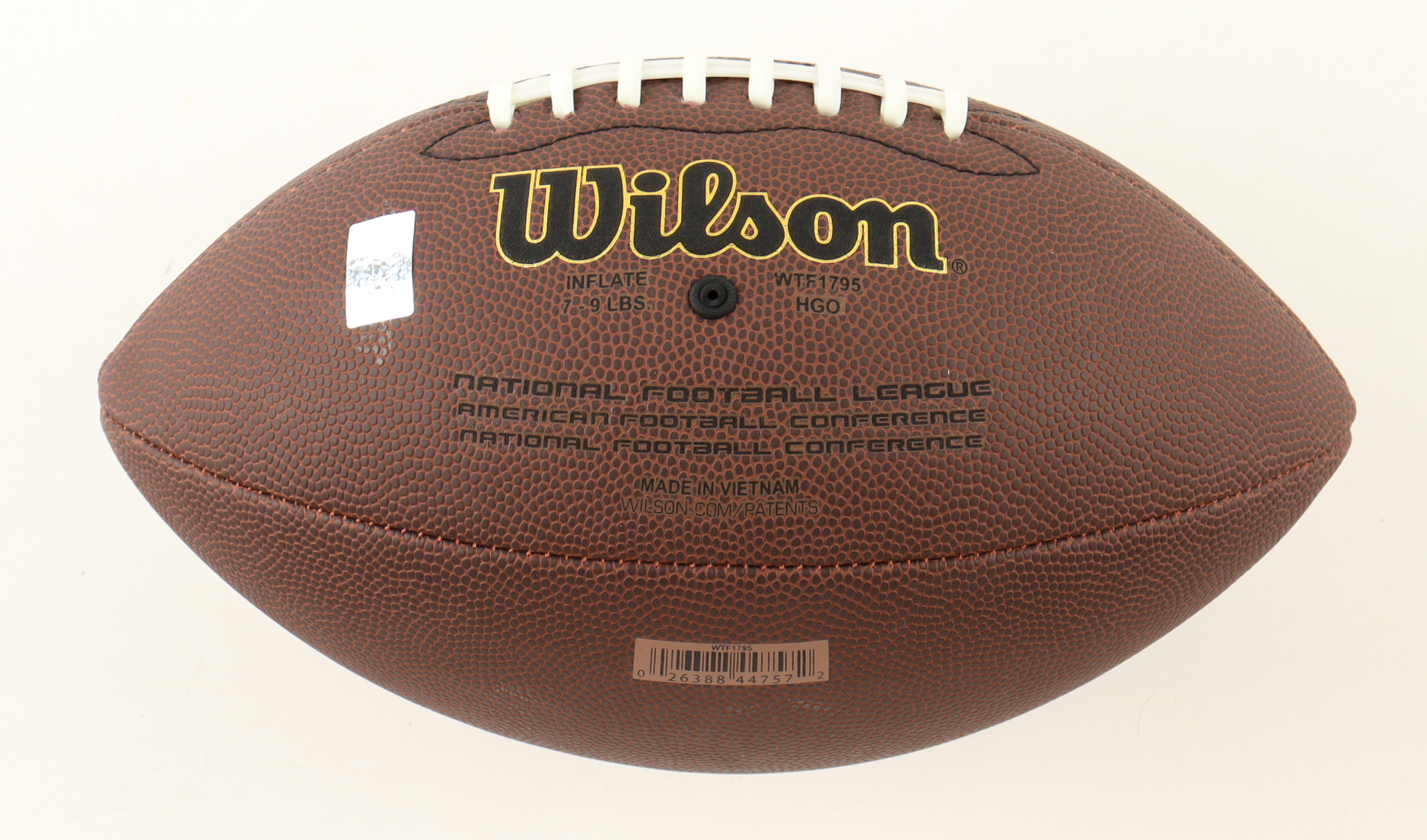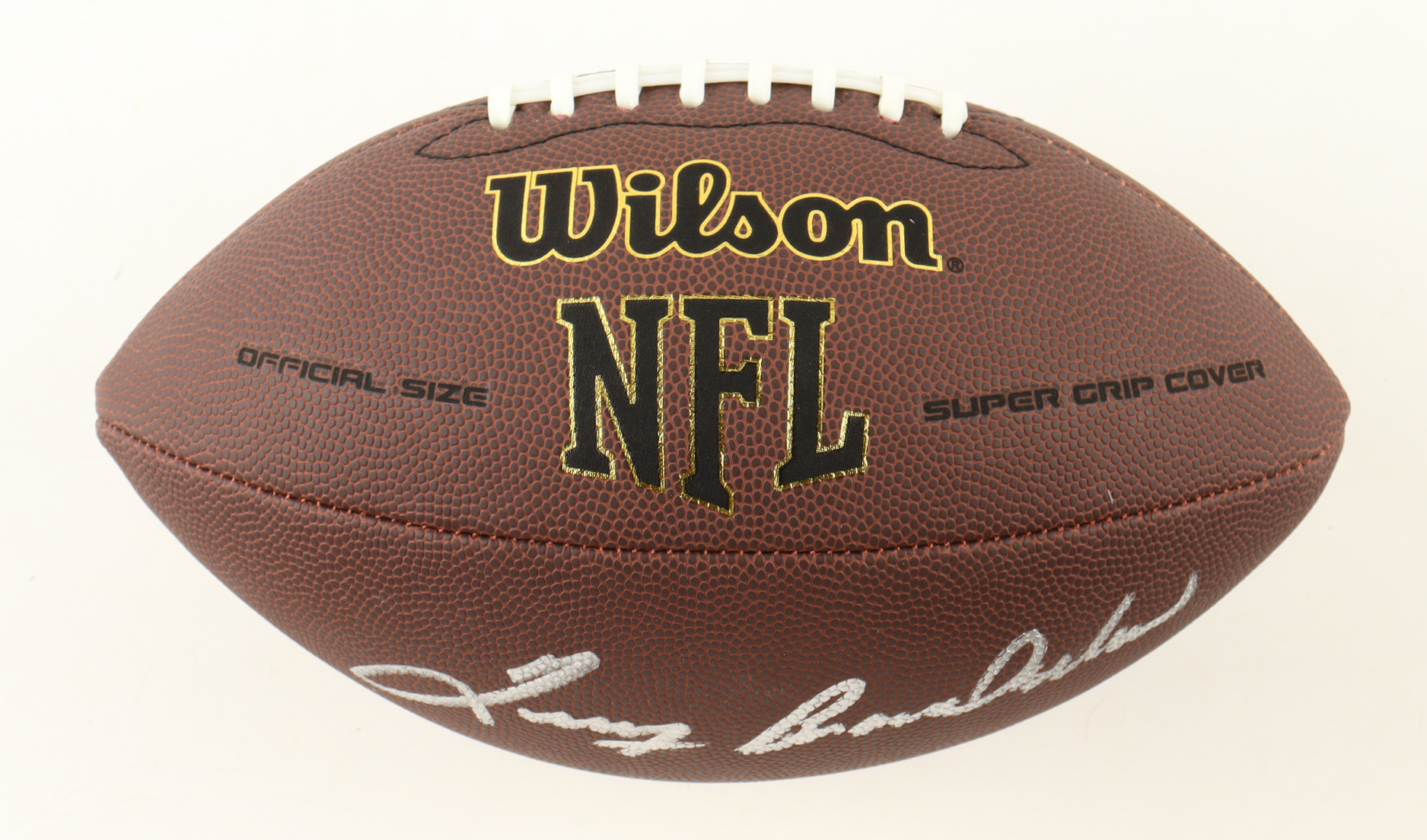 Wilson Super Grip Cover NFL Football. Hand-signed by Terry Bradshaw (Pittsburgh Steelers, HOF). Please note, there are minor stains throughout the football.