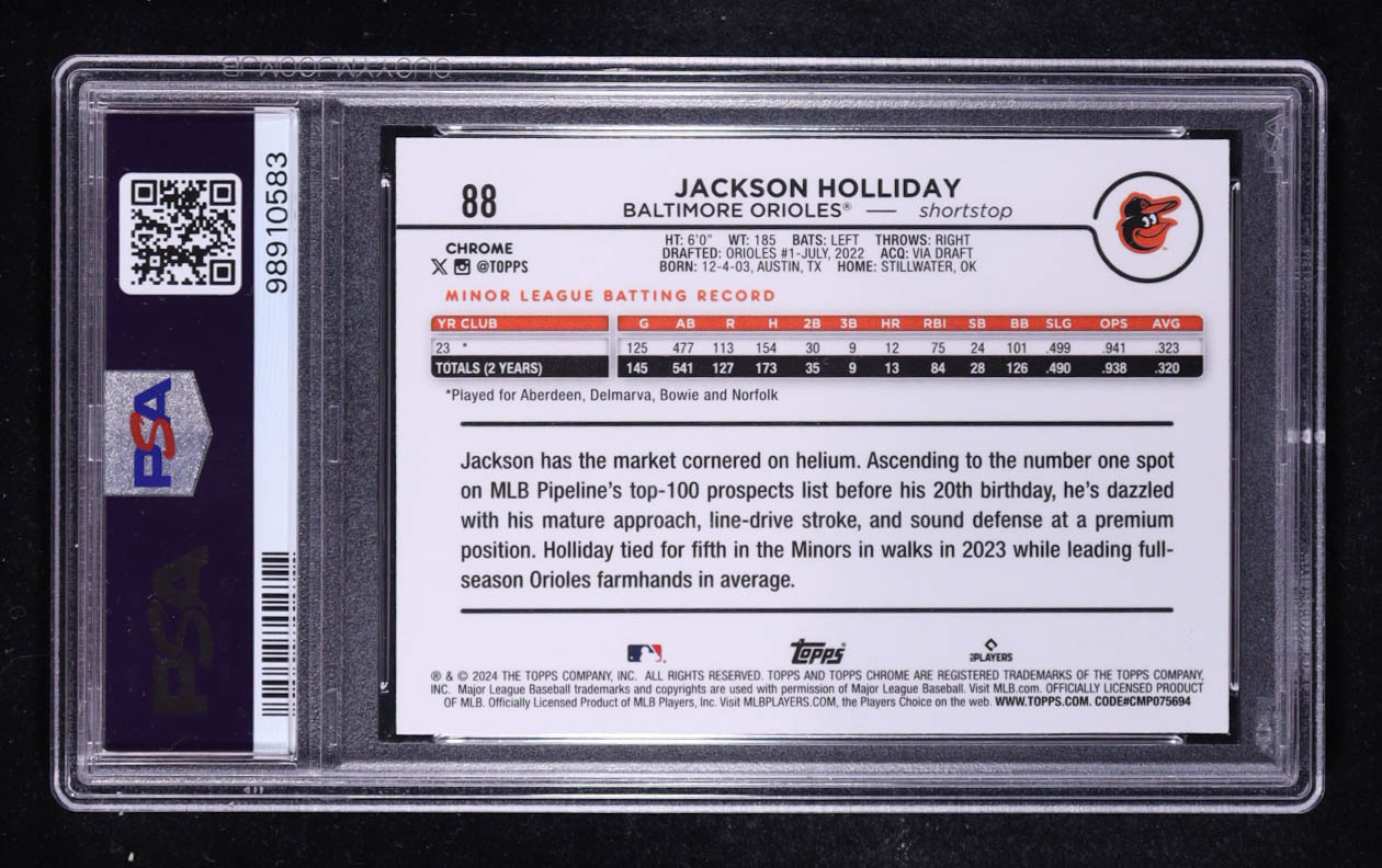 Jackson Holliday 2024 Topps Chrome Prism Refractor #88 RC (PSA 10)