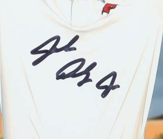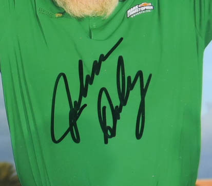 Custom frame measures approximately 18” x 22” in size and features a photo that has been hand-signed by John Daly Jr. and John Daly.