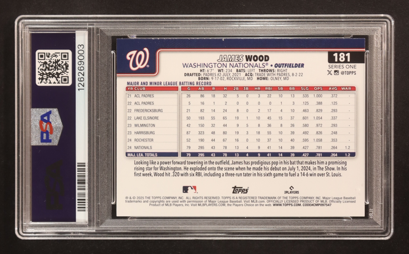 James Wood 2025 Topps Aqua Holo Foil #181 (PSA 8)