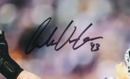 Custom frame measures approximately 18" x 24" in size, and features a photo that has been hand-signed by Andrew Van Ginkel (Minnesota Vikings).