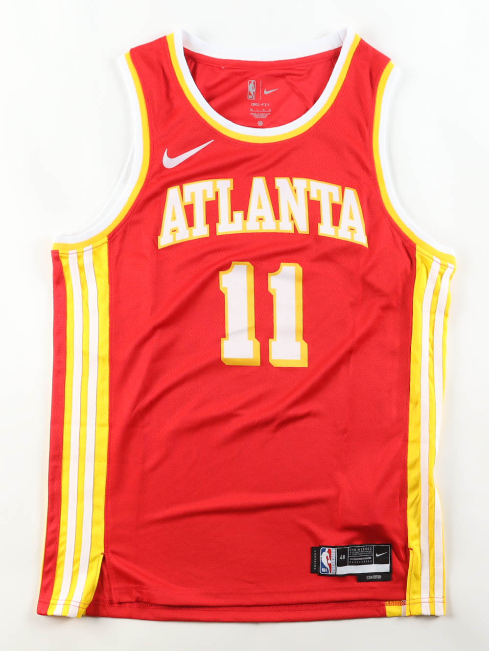 Nike jersey with everything sewn on, size 48. Hand-signed by Trae Young (Atlanta Hawks).