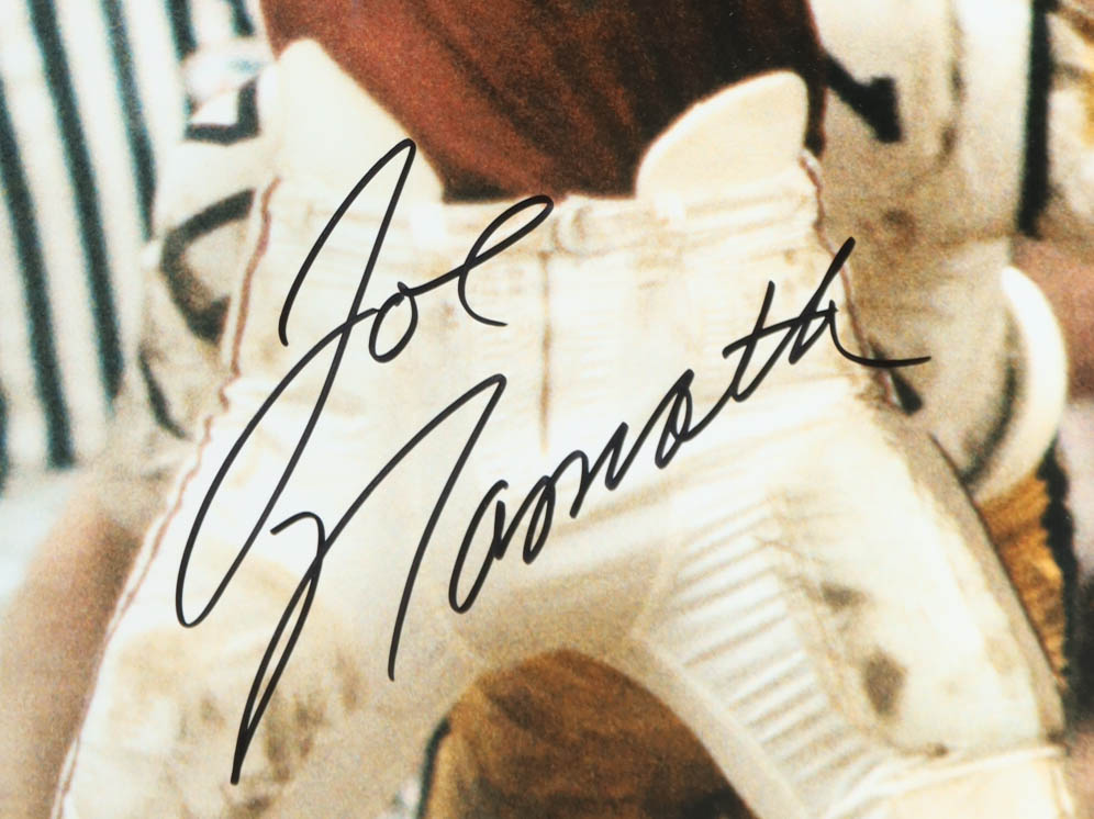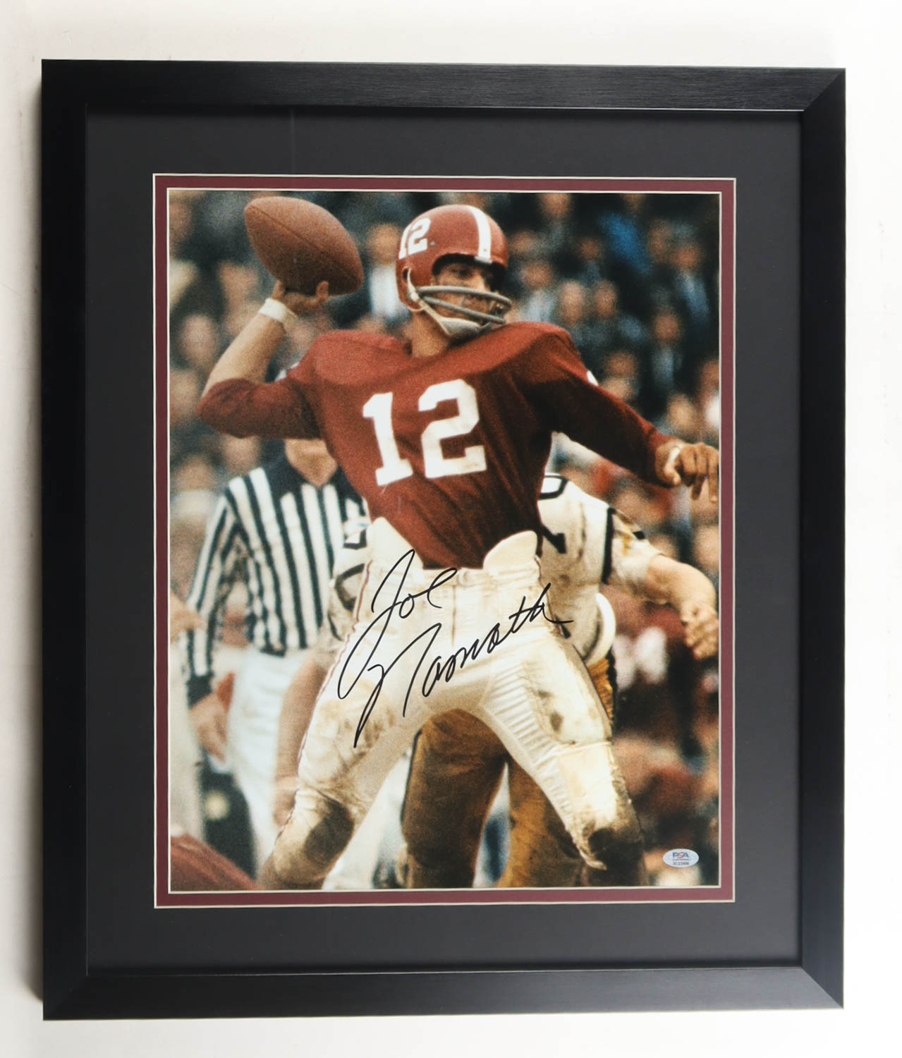 Custom frame measures approximately 22" x 26" in size, and features a photo that has been hand-signed by Joe Namath (Alabama Crimson Tide, HOF).