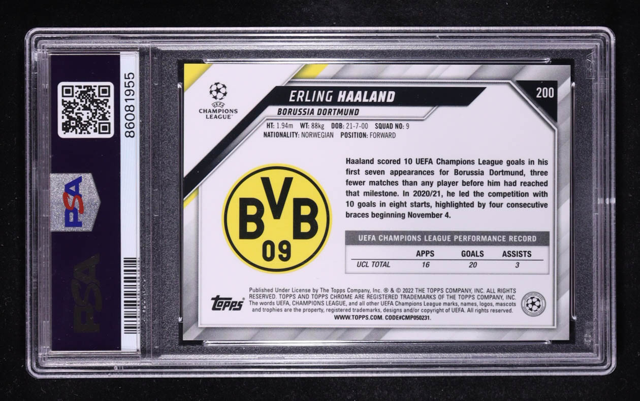 Erling Haaland 2021-22 Topps Chrome UCL Blue Lava Refractor #200 (PSA 10)