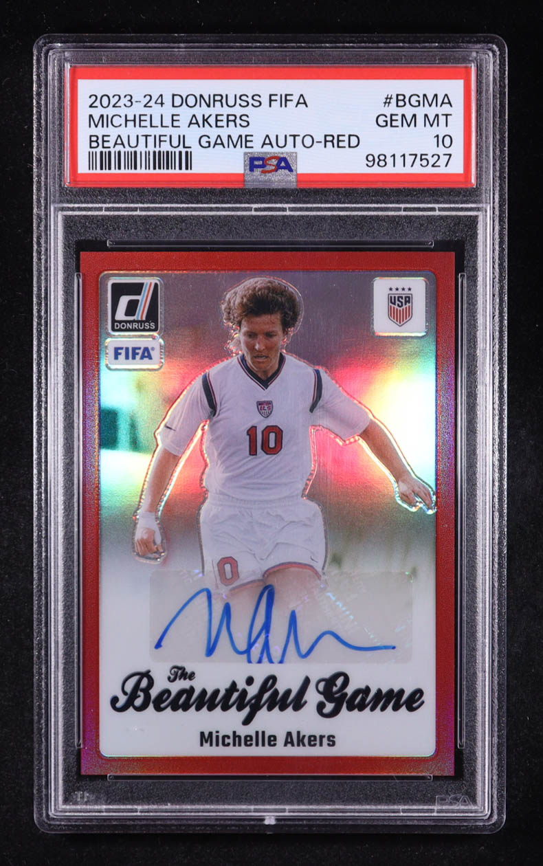 Michelle Akers 2023-24 Panini Donruss FIFA The Beautiful Game Auto-Red #BGMA #12/49 (PSA 10)