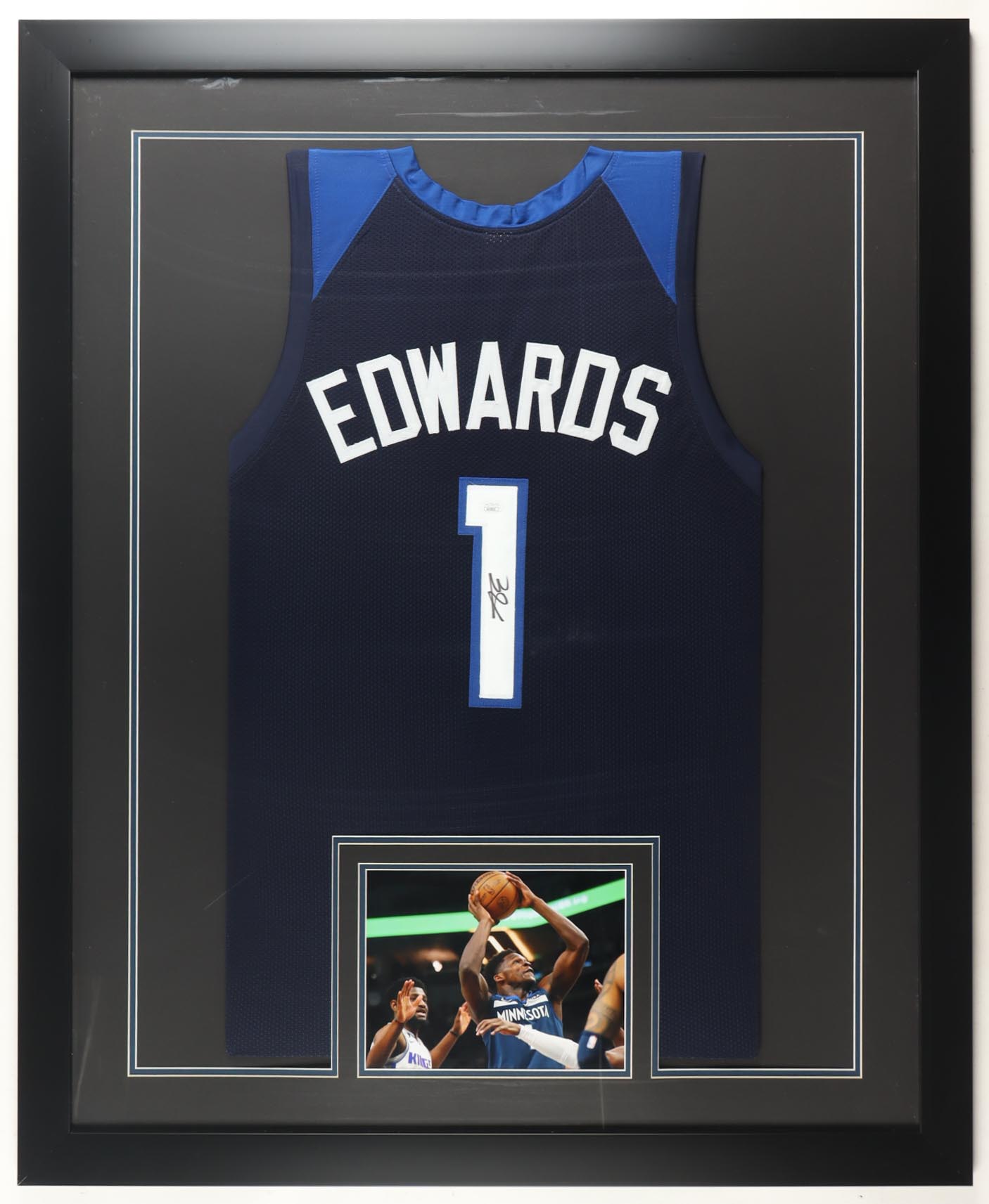 Anthony Edwards Signed Custom Framed Jersey (JSA)