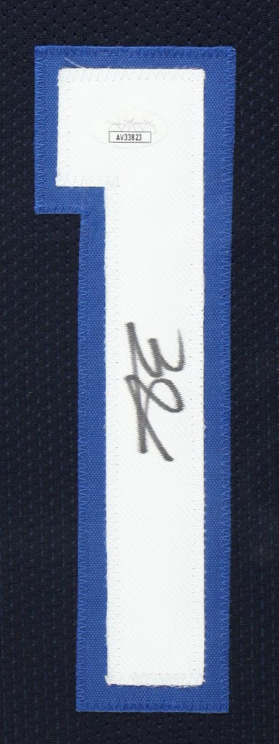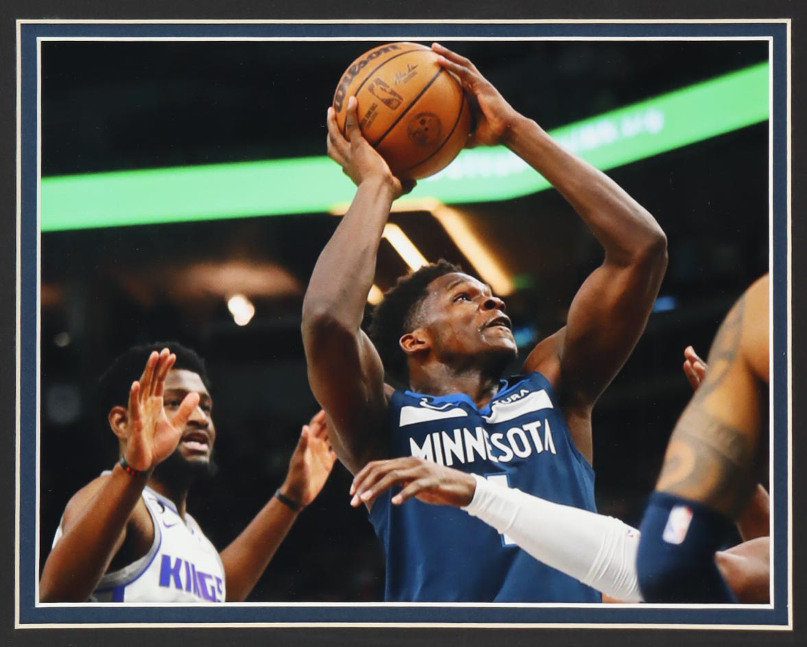 Custom frame measures 35.5" x 43.5" in size and features a jersey that has been hand-signed by Anthony Edwards.