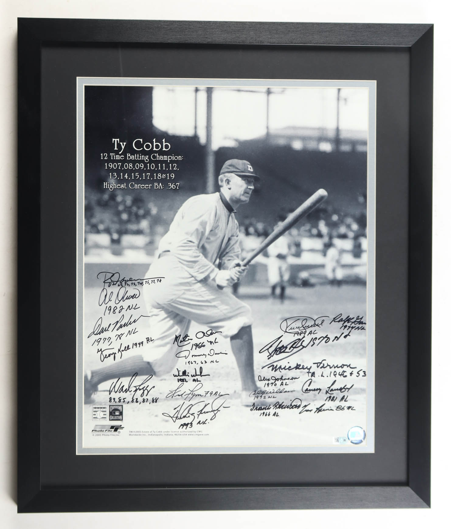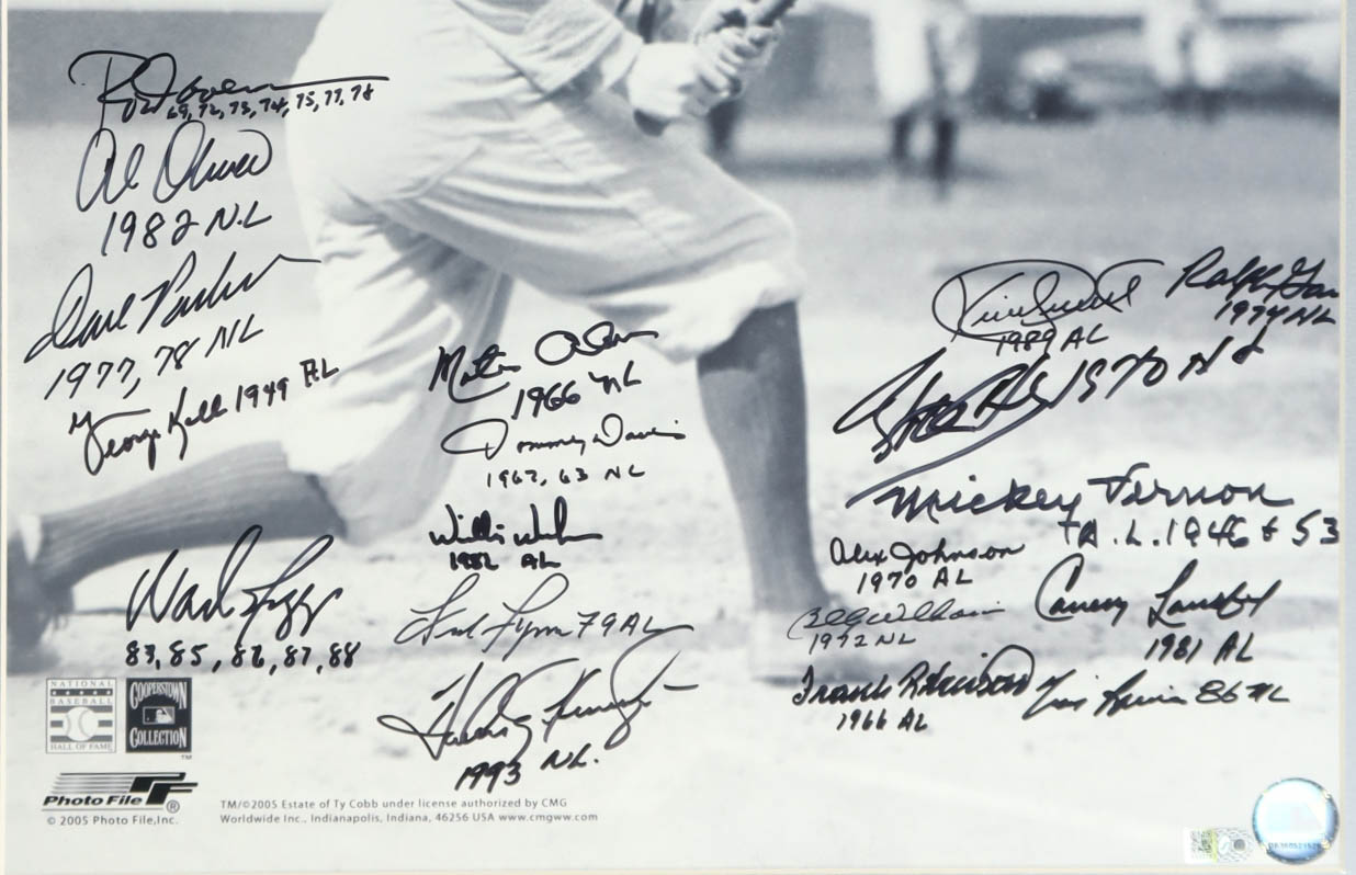 Custom frame measures approximately 22” x 26” in size and features a photo that has been hand-signed and inscribed by Kirby Puckett, Frank Robinson, Rod Carew, Wade Boggs, George Kell, Tim Raines, Billy Williams, Dave Parker, Mickey Vernon, Alex Johnson, Mateo Alou, Andres Galarraga, Carney Lansford, Willie Wilson, Tommy Davis, Ralph Garr, Al Oliver, Fred Lynn, and Rico Carty.