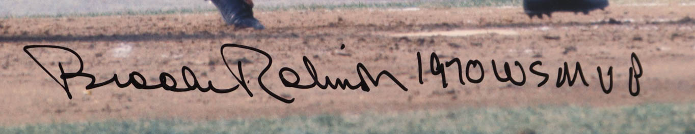 Custom frame measures approximately 22” x 26” in size and features a photo that has been hand-signed and inscribed by Brooks Robinson (D. 2023, Baltimore Orioles, HOF).