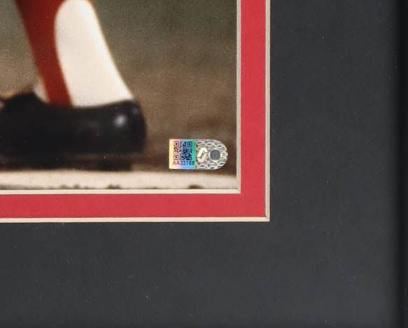 Custom frame measures approximately 22" x 26" in size and features a photo that has been hand-signed by Carlton Fisk (Boston Red Sox, HOF).