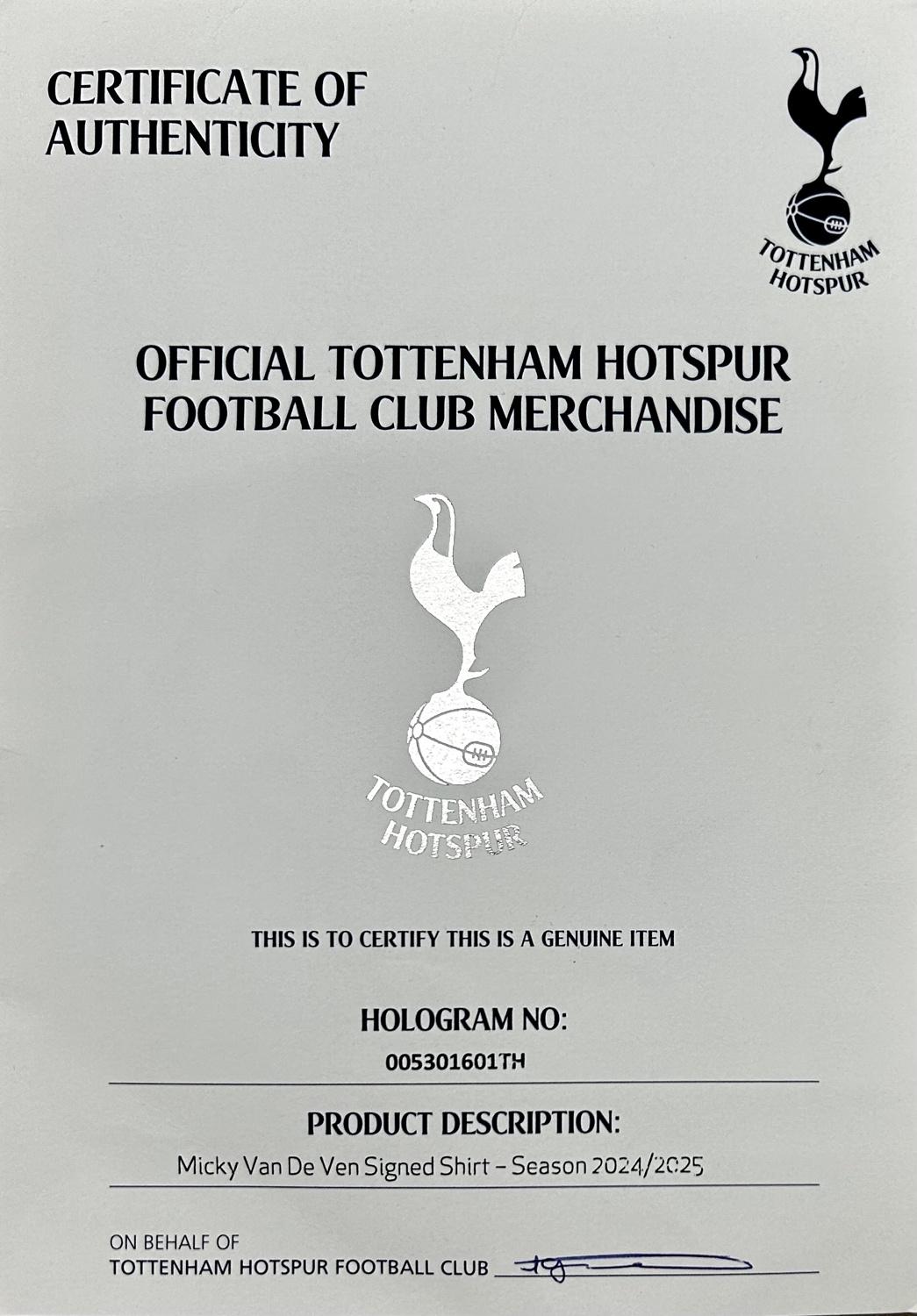 Nike jersey with everything pressed on, size L. Hand-signed by Mickey van de Ven (Tottenham Hotspur).