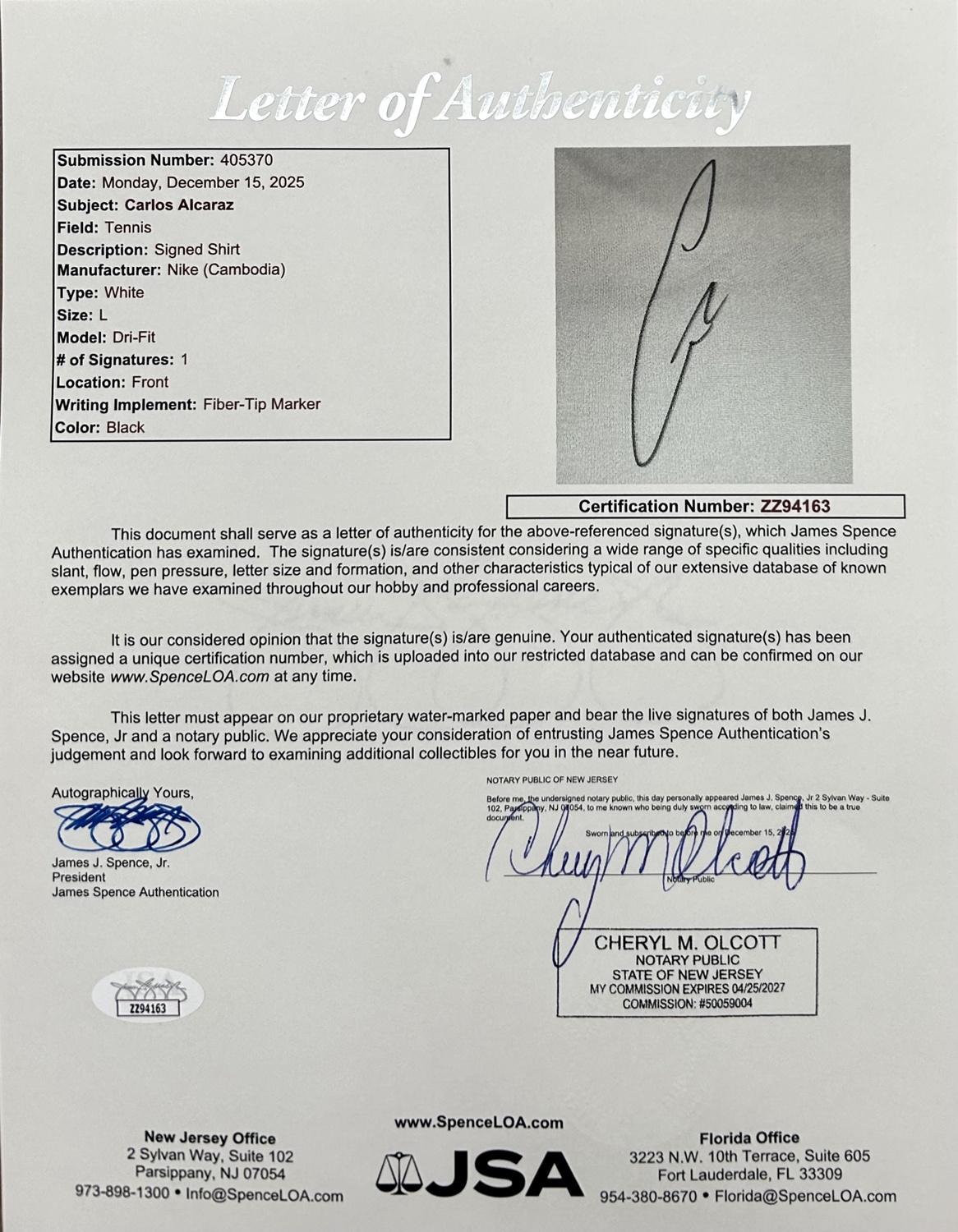 Carlos Alcaraz Signed Nike Tennis Shirt (JSA)