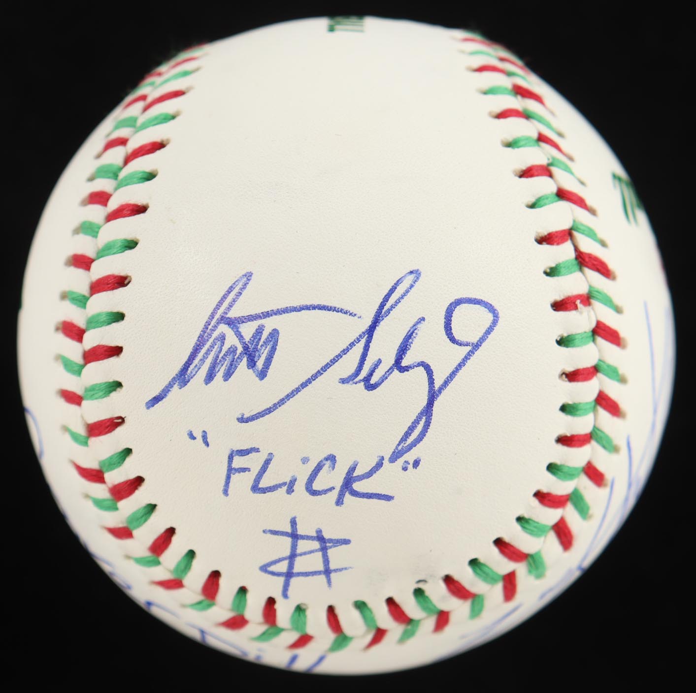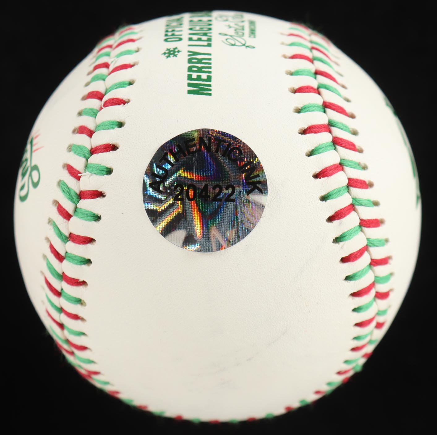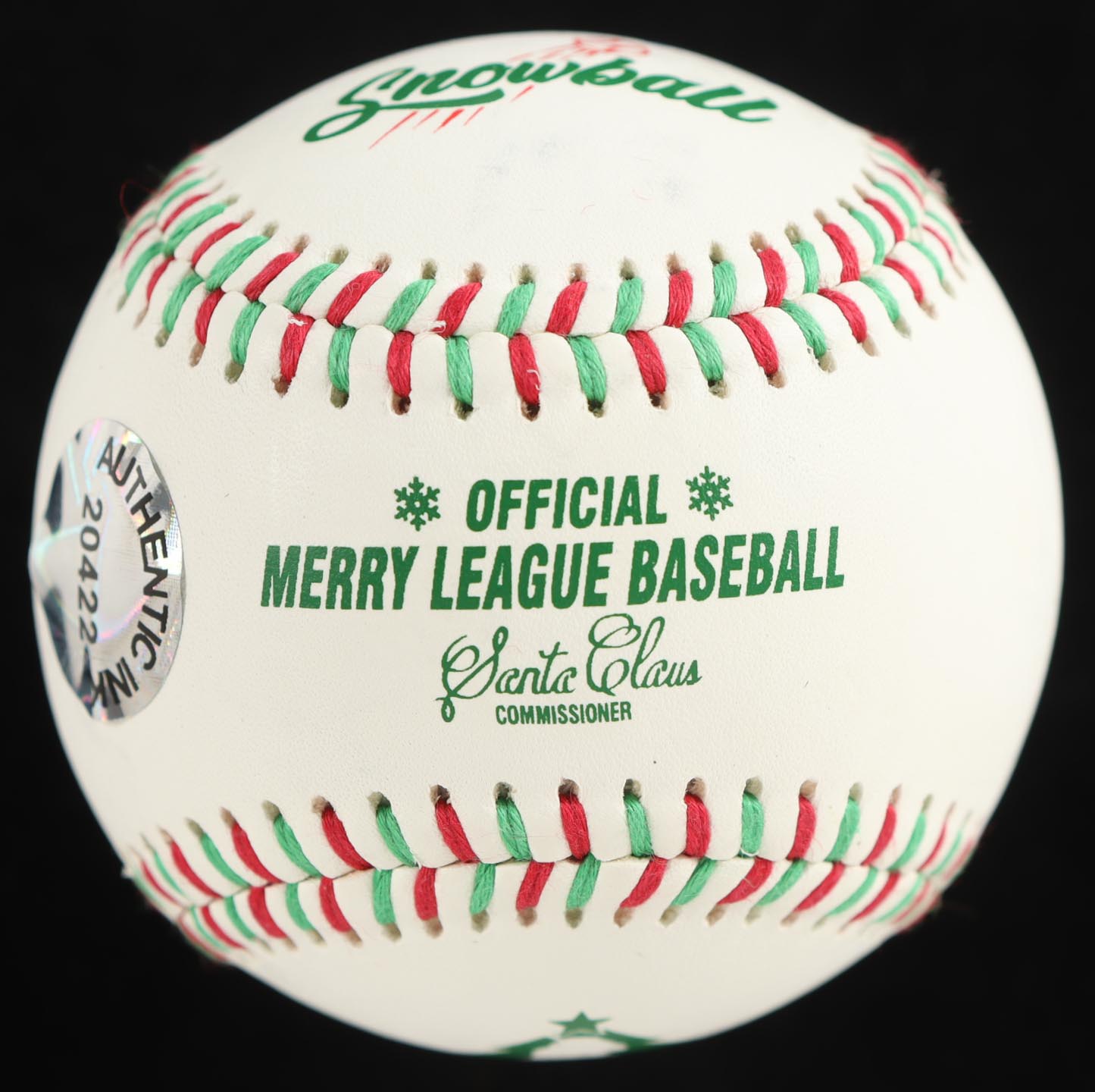 Custom "Merry League" baseball has been hand-signed by Zack Ward, Yano Anaya, and Scott Schwartz.