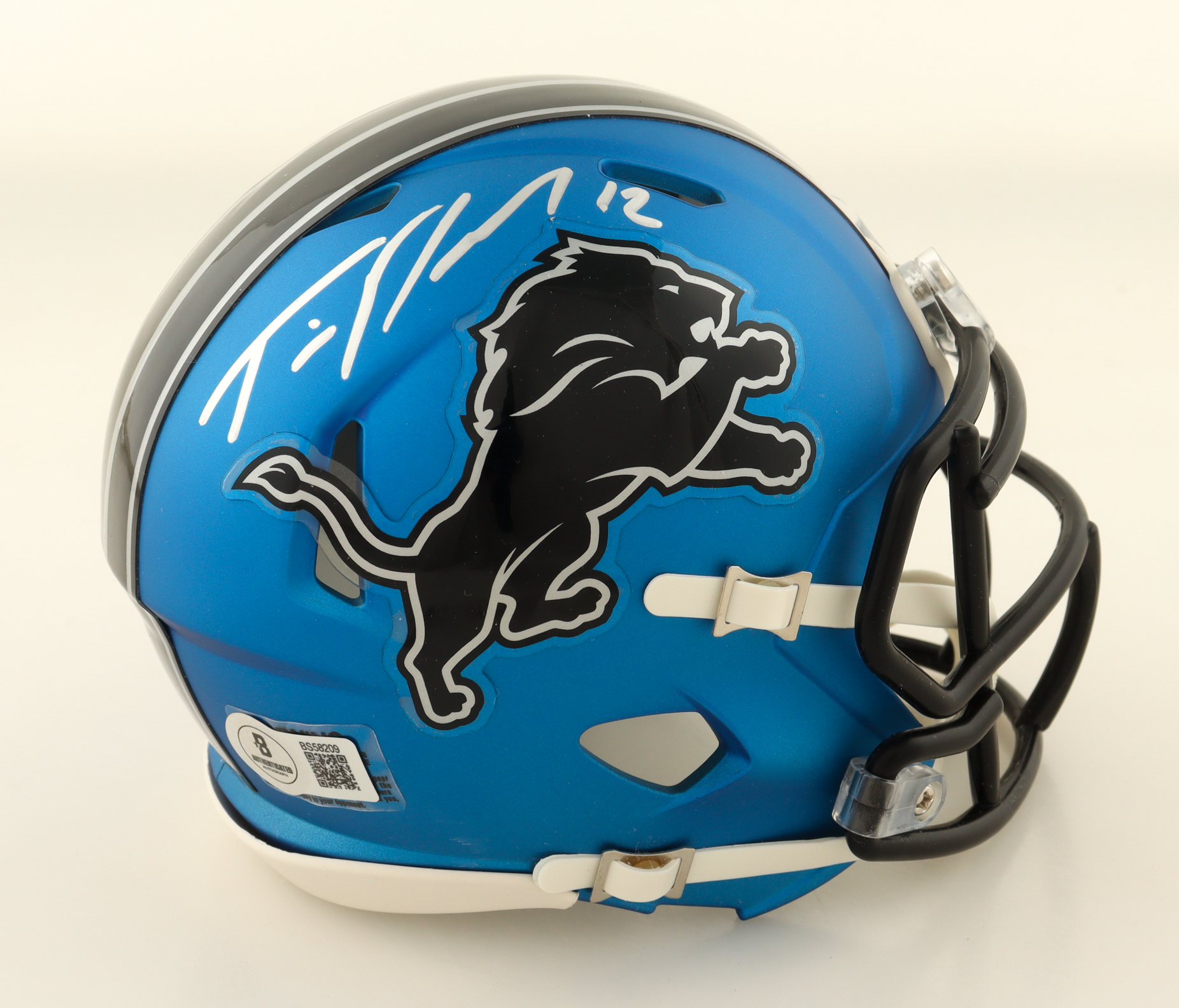Riddell Detroit Lions Alternate Speed mini helmet. Hand-signed by Tim Patrick.