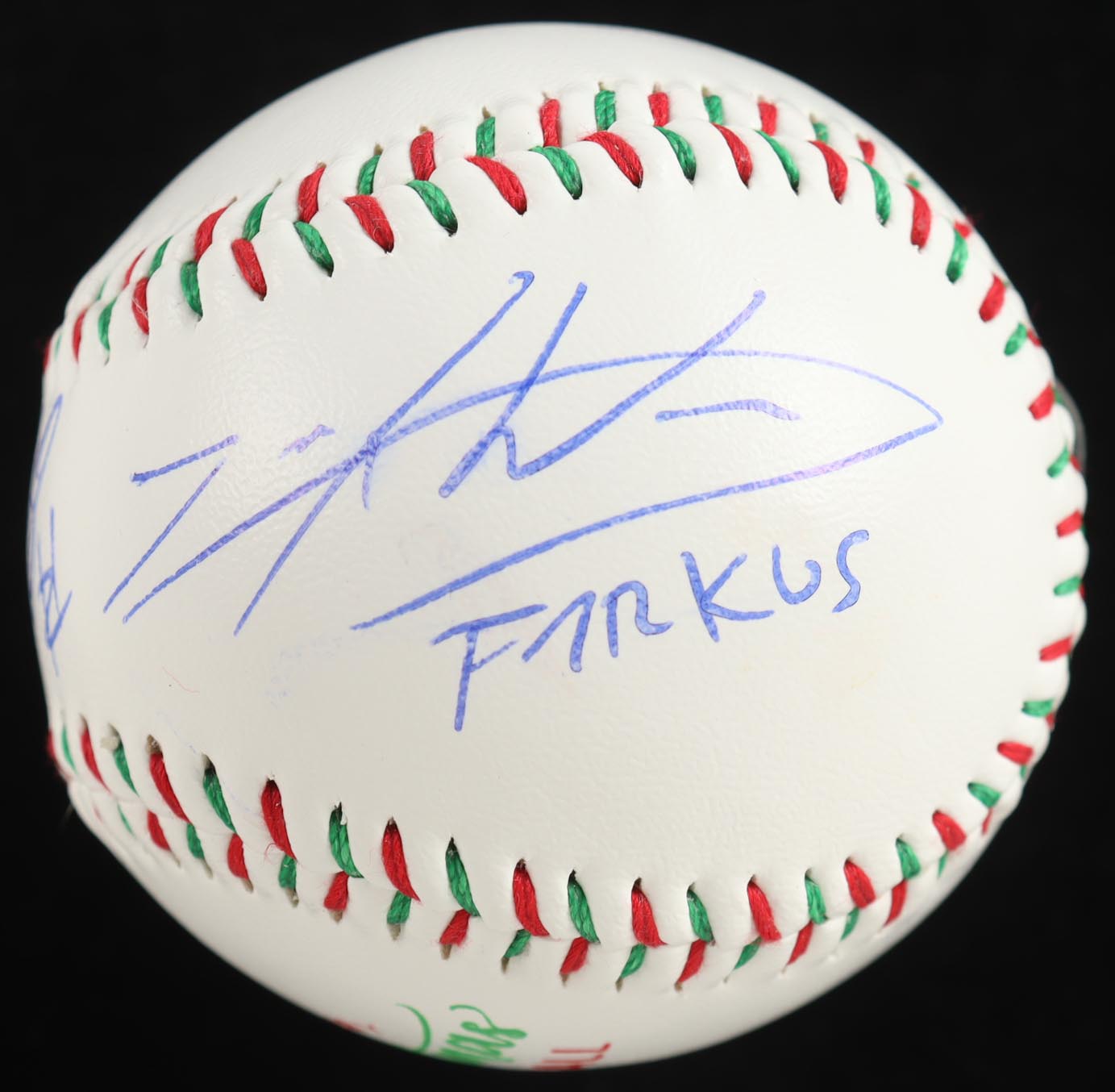 Custom baseball has been hand-signed by Zack Ward, Yano Anaya, and Scott Schwartz.