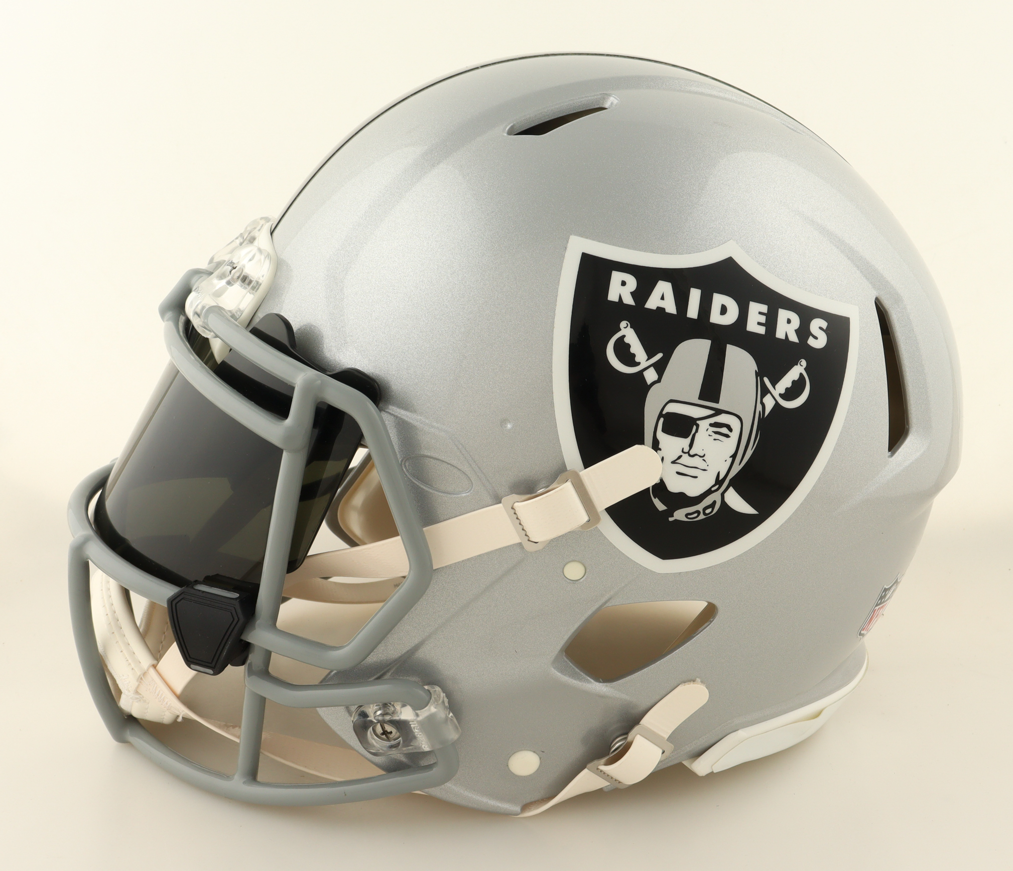 Riddell Las Vegas Raiders full-size authentic on-field speed helmet with a visor. Has been hand-signed by Jason Witten.